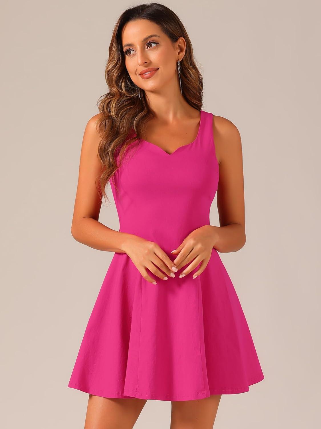 Allegra K Women's Party Sexy Dress Sleeveless Sweetheart Neck Cocktail Fit and Flare A Line Swing Tank Mini Dresses(Hot Pink)