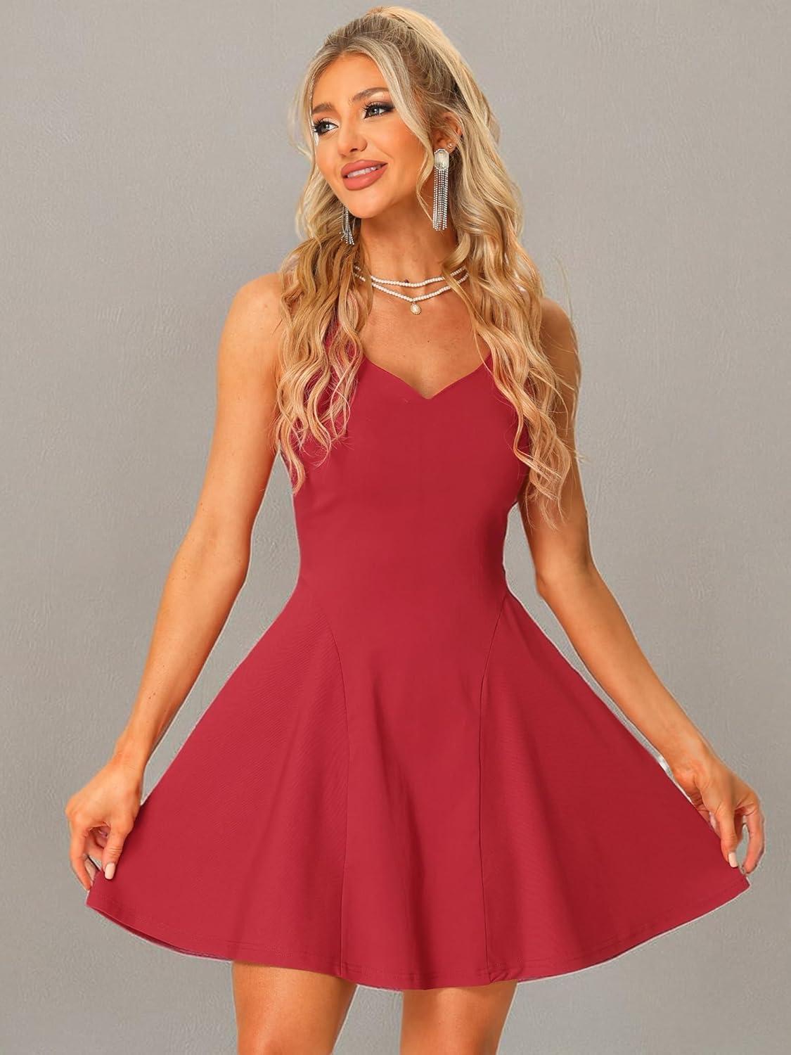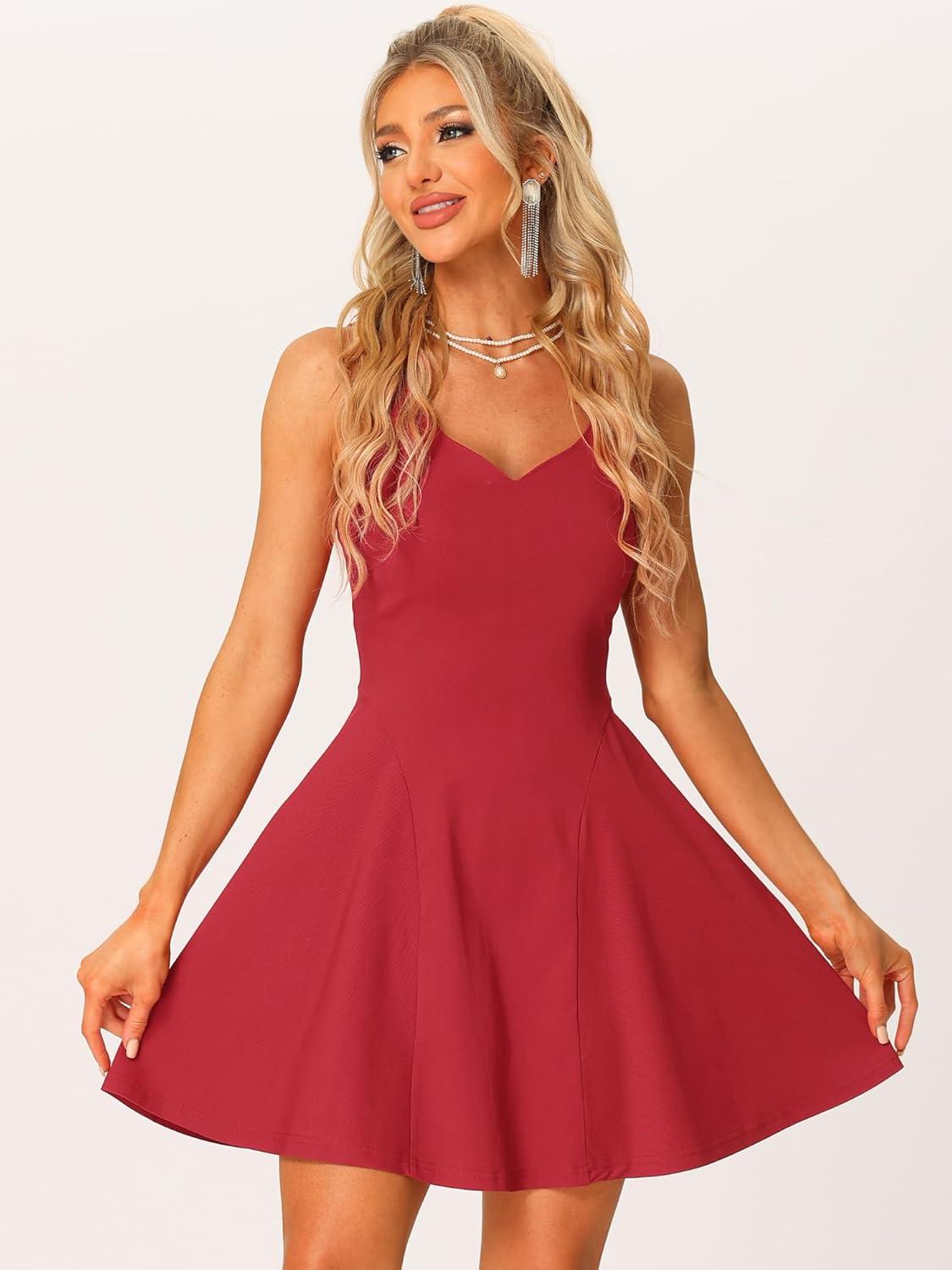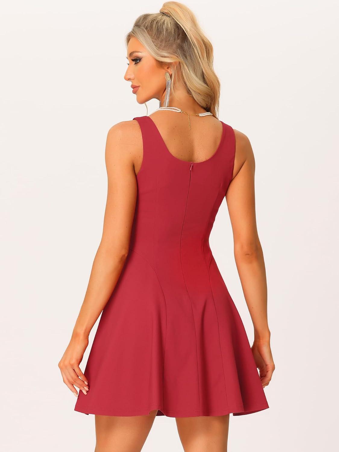 Allegra K Women’s Party Sexy Dress Sleeveless Sweetheart Neck Cocktail Fit and Flare A Line Swing Tank Mini Dresses(Wine Red)