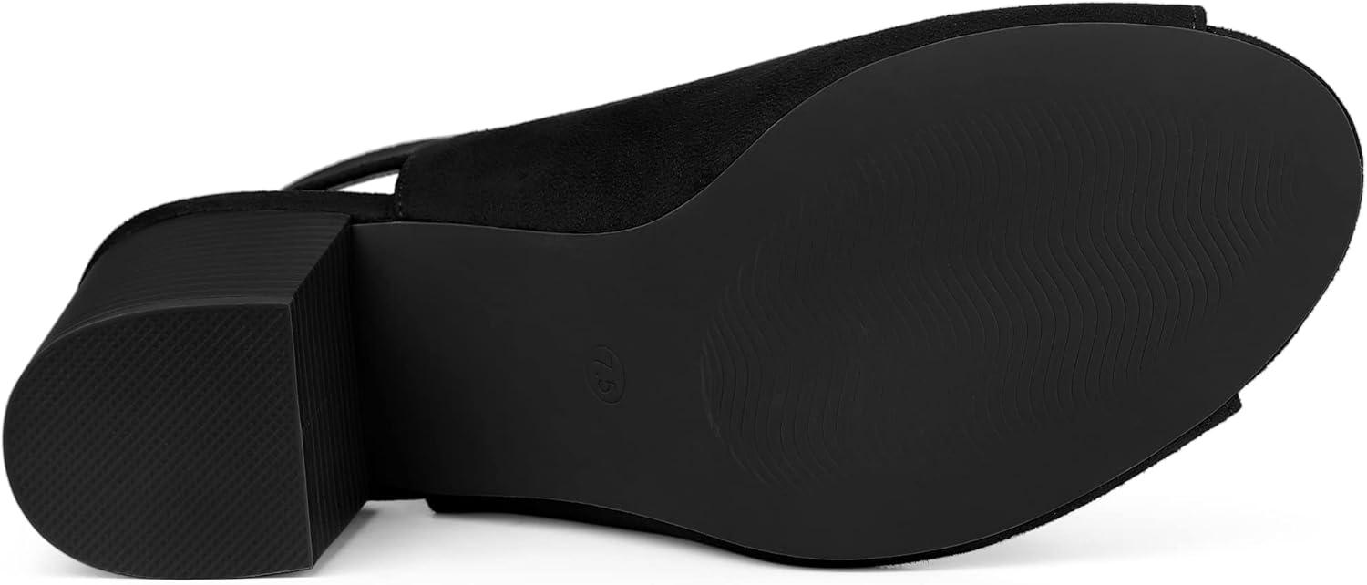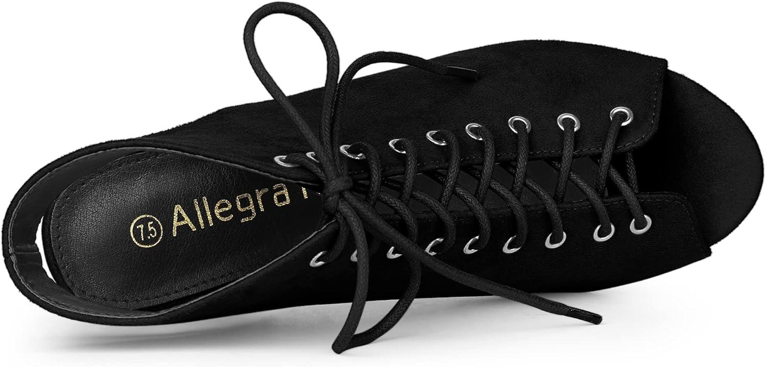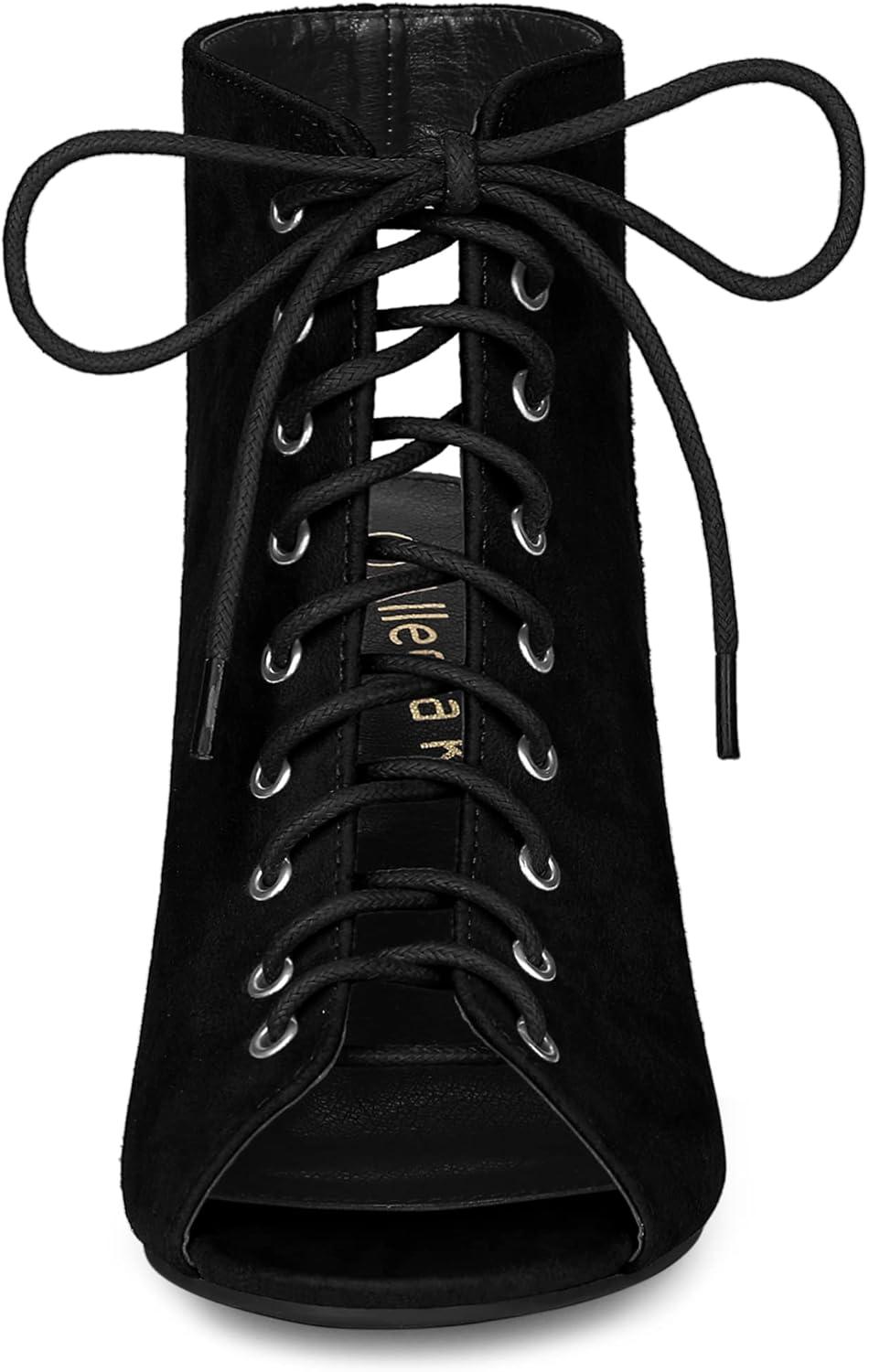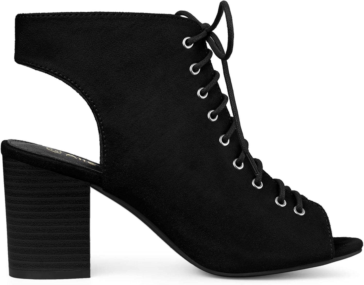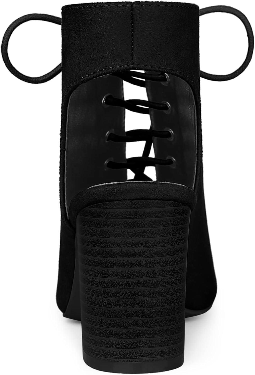 Allegra K Women’s Peep Toe Chunky Heel Lace Up Slingback Dressy Booties(Black)