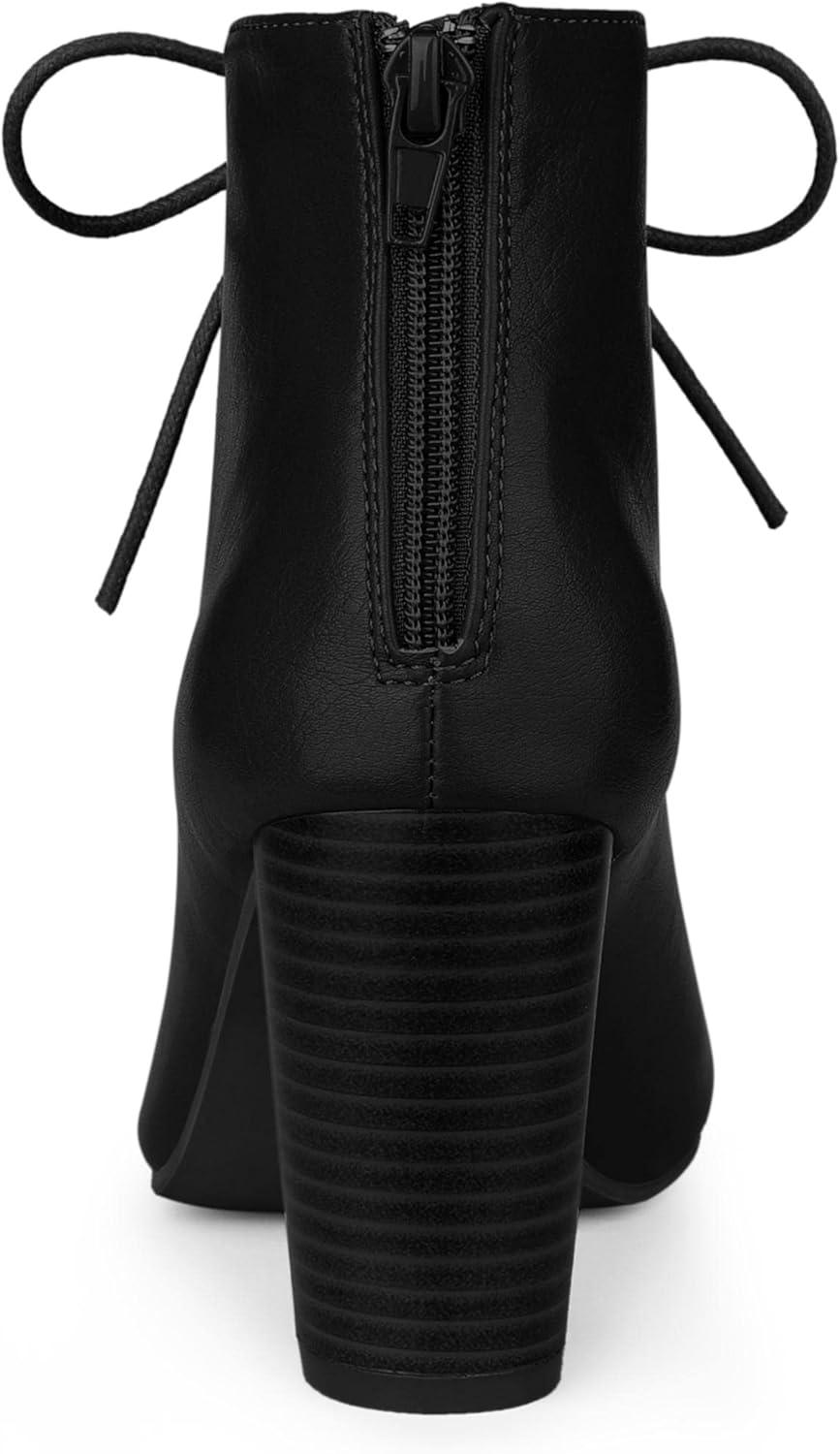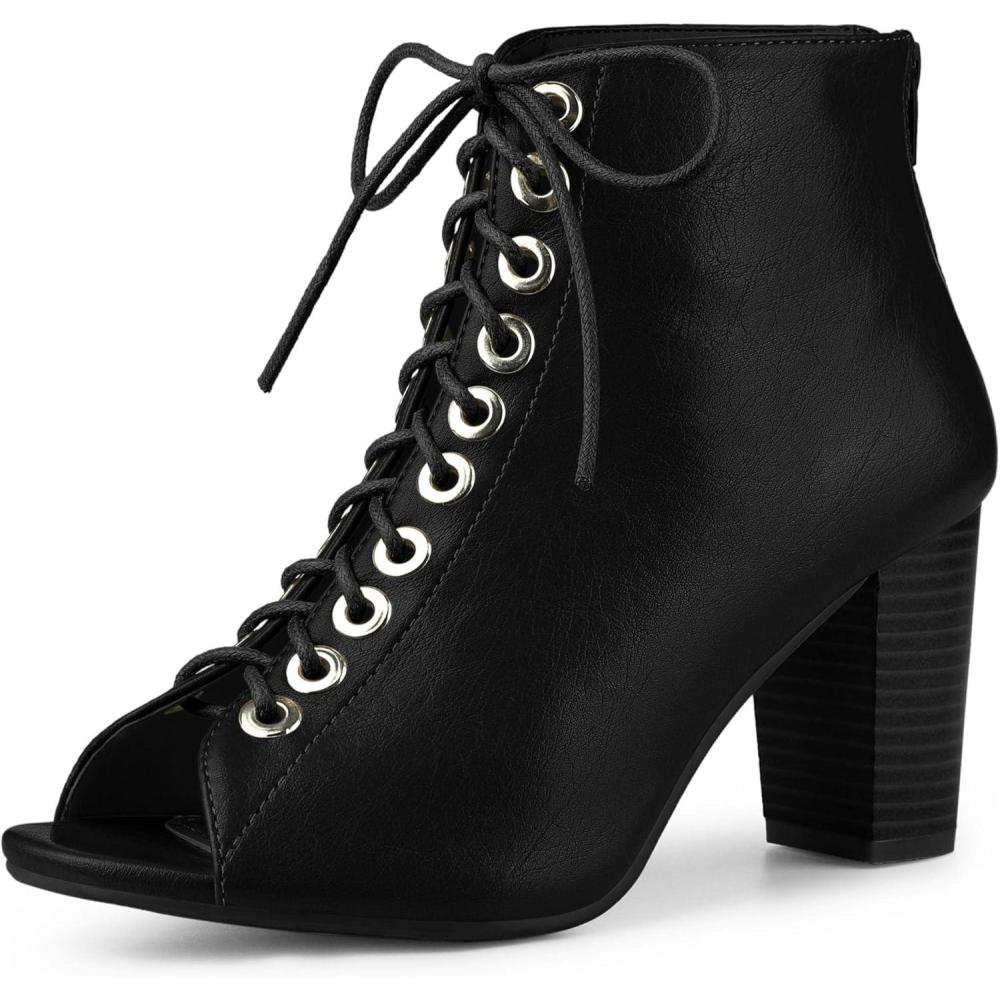 Allegra K Women’s Peep Toe Lace Up Chunky Heeled Ankle Booties(Black)