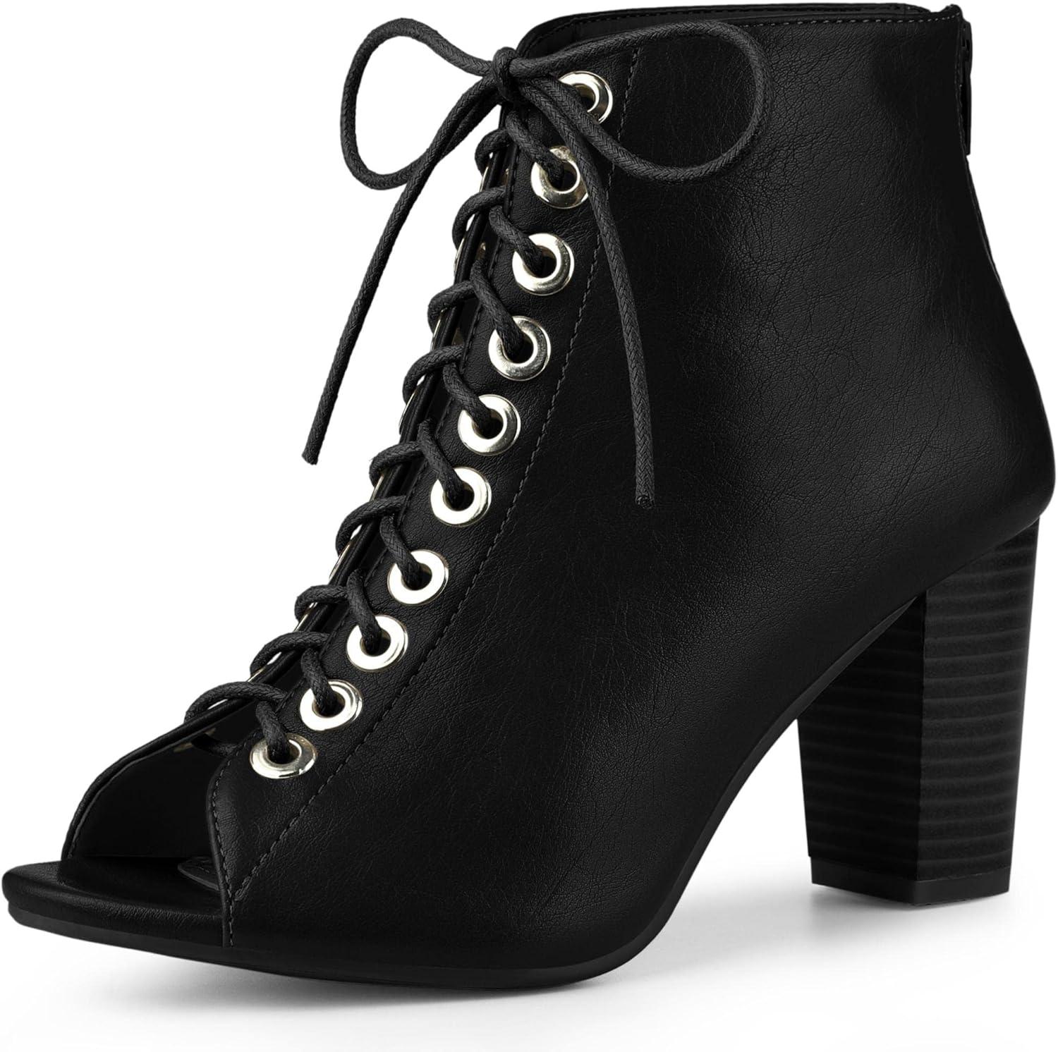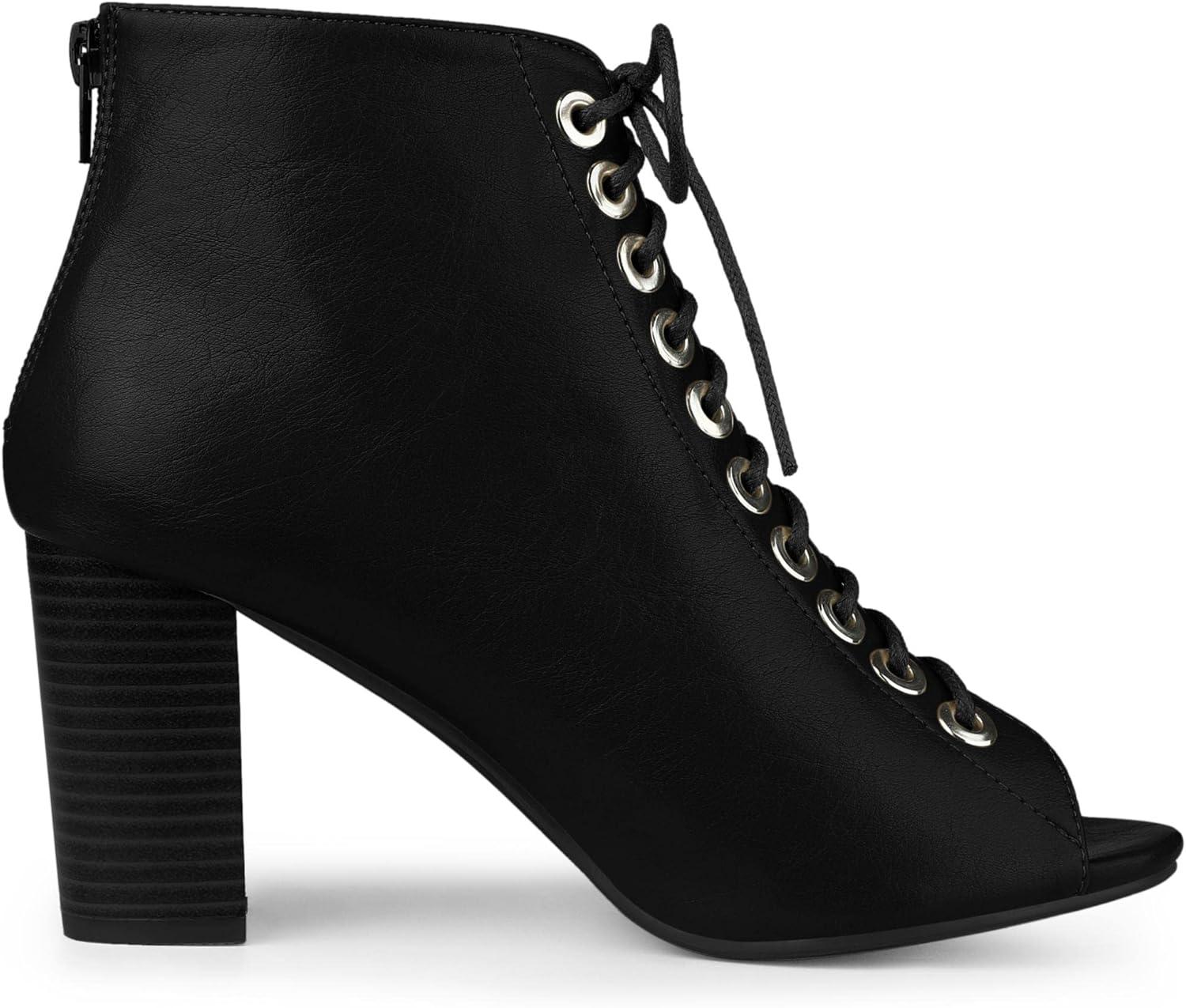 Allegra K Women's Peep Toe Lace Up Chunky Heeled Ankle Booties(Black)