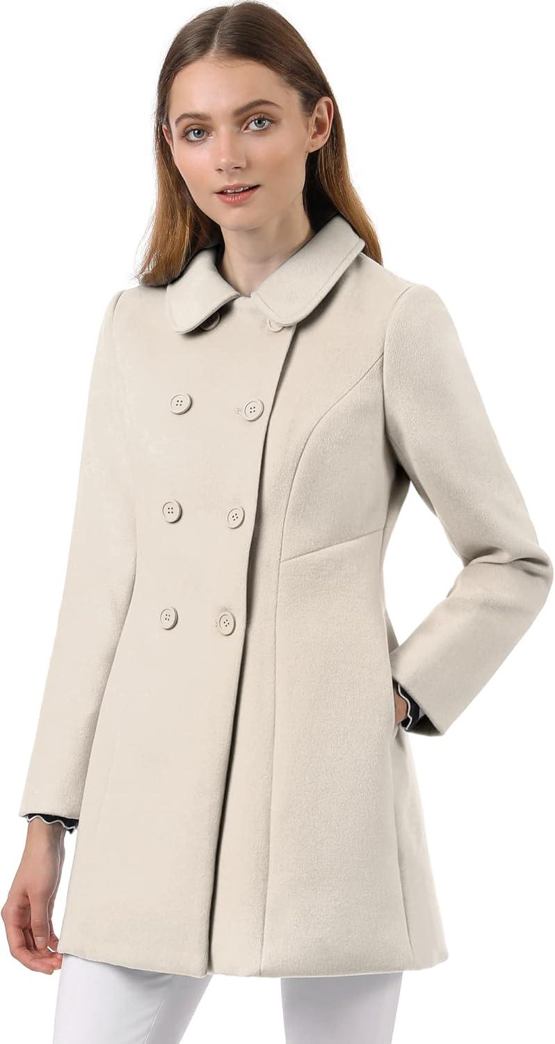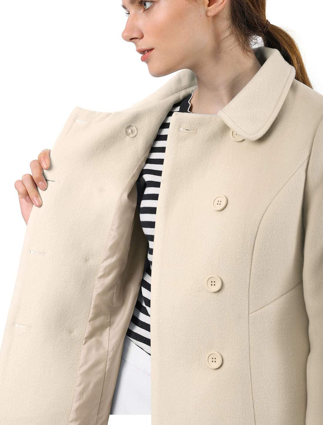 Allegra K Women’s Peter Pan Collar Double Breasted Winter Long Trench Pea Coat(Beige)