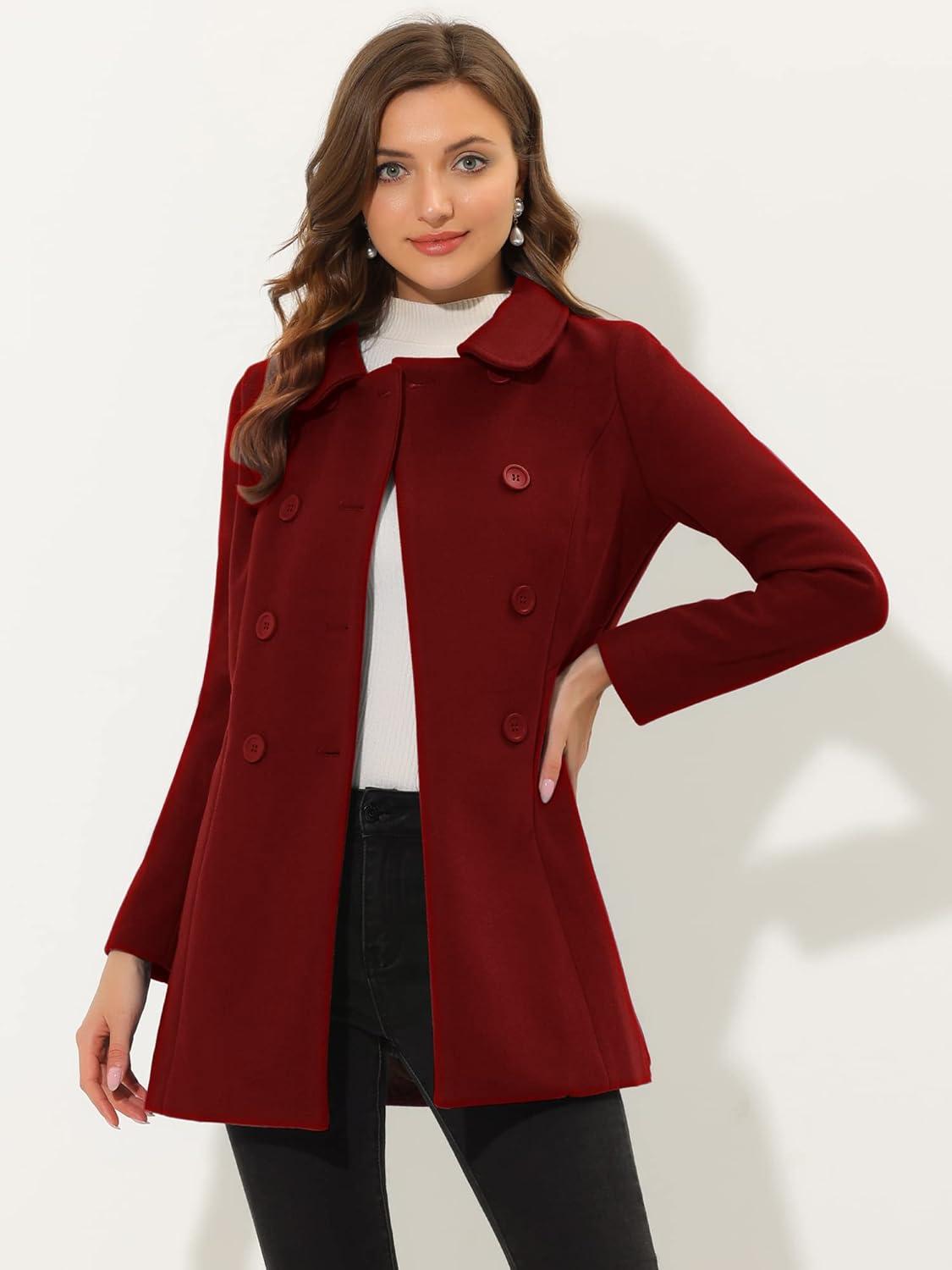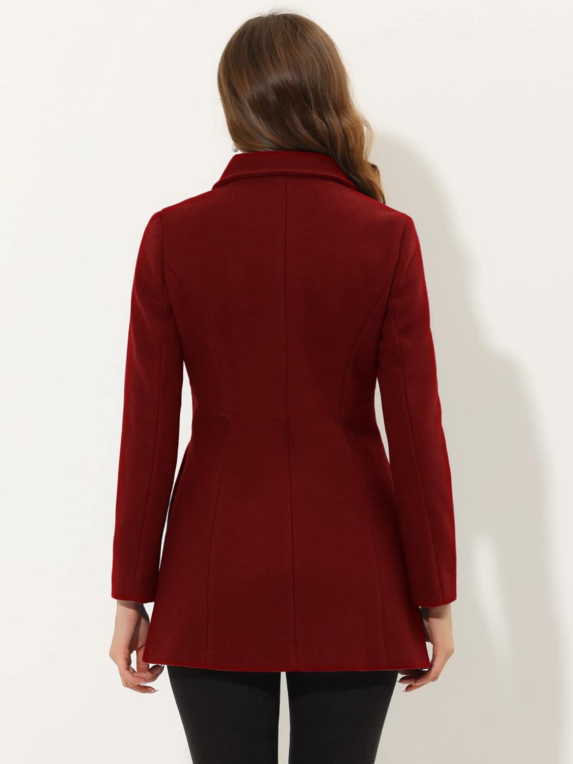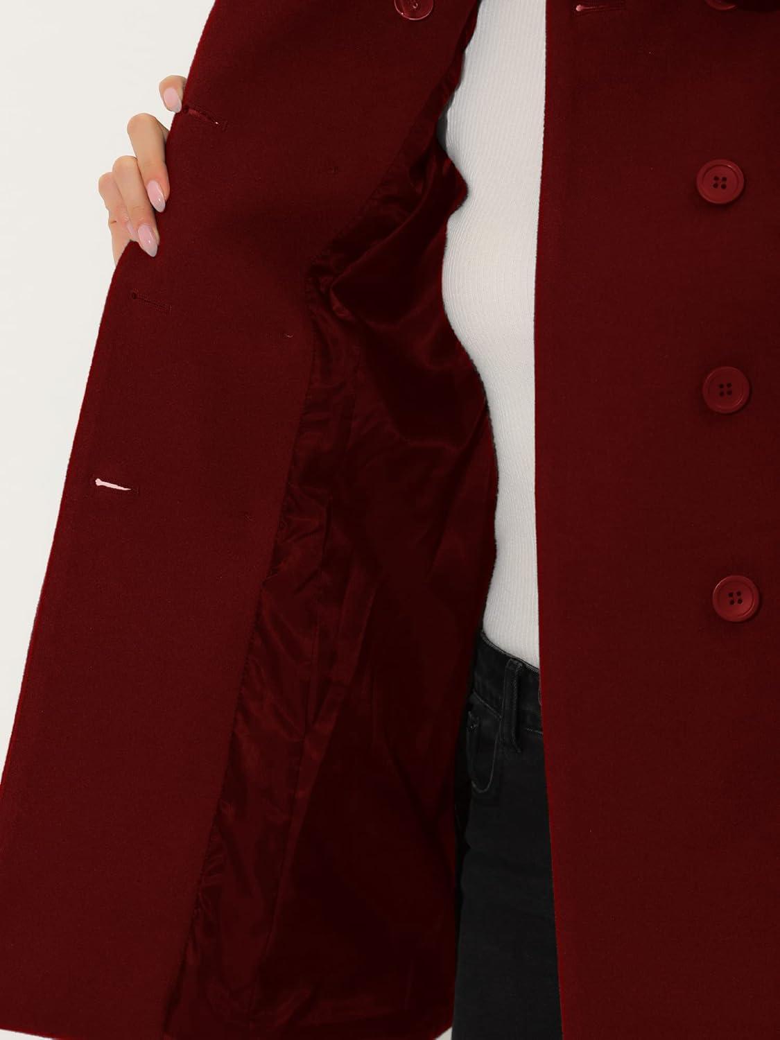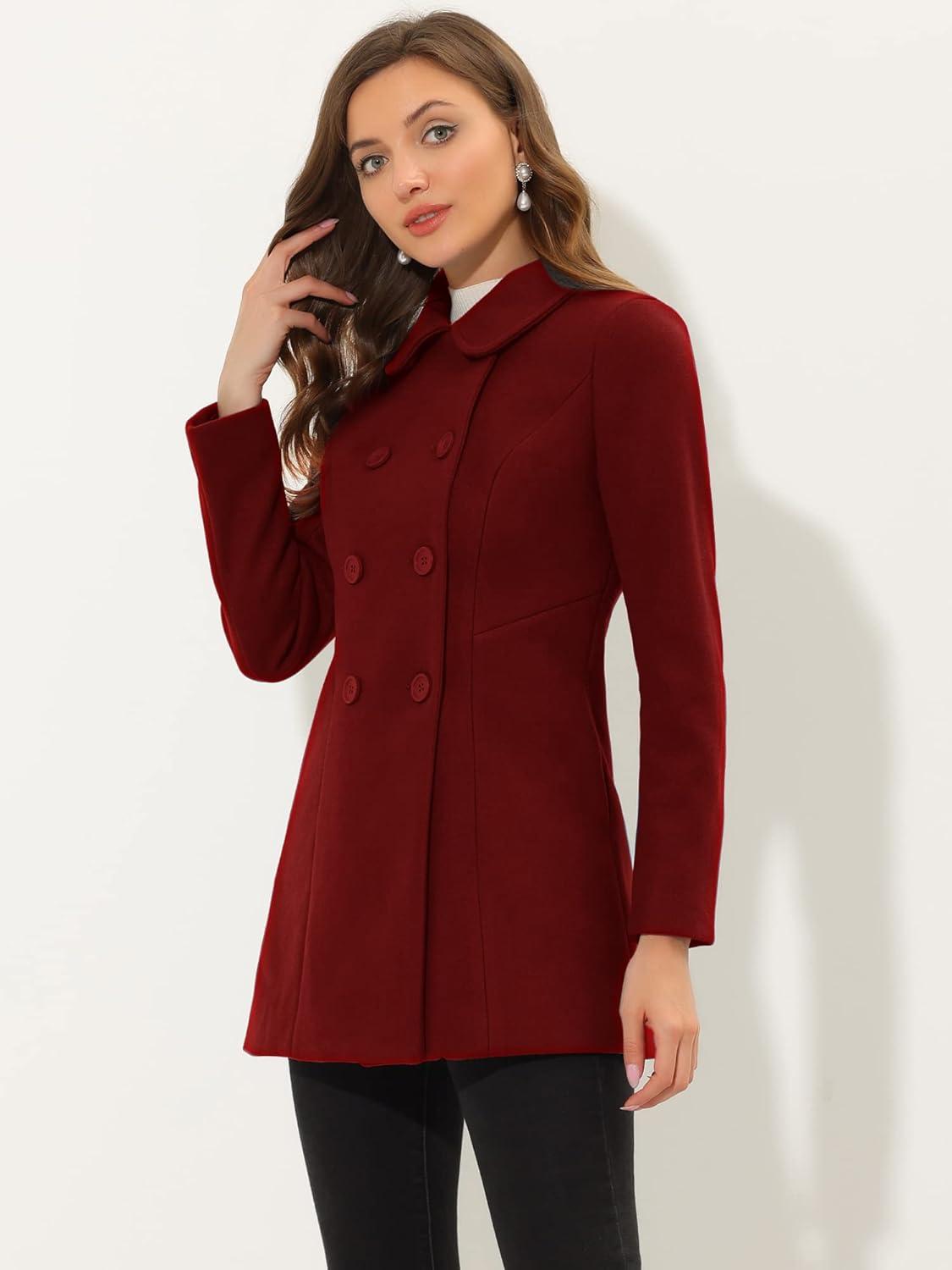 Allegra K Women’s Peter Pan Collar Double Breasted Winter Long Trench Pea Coat(Dark Red)