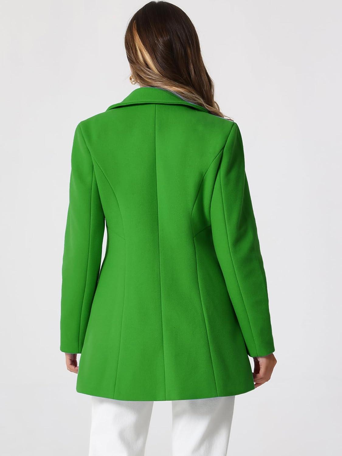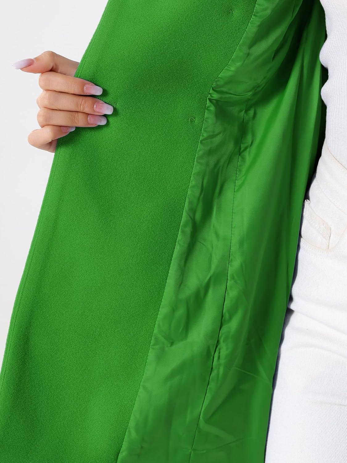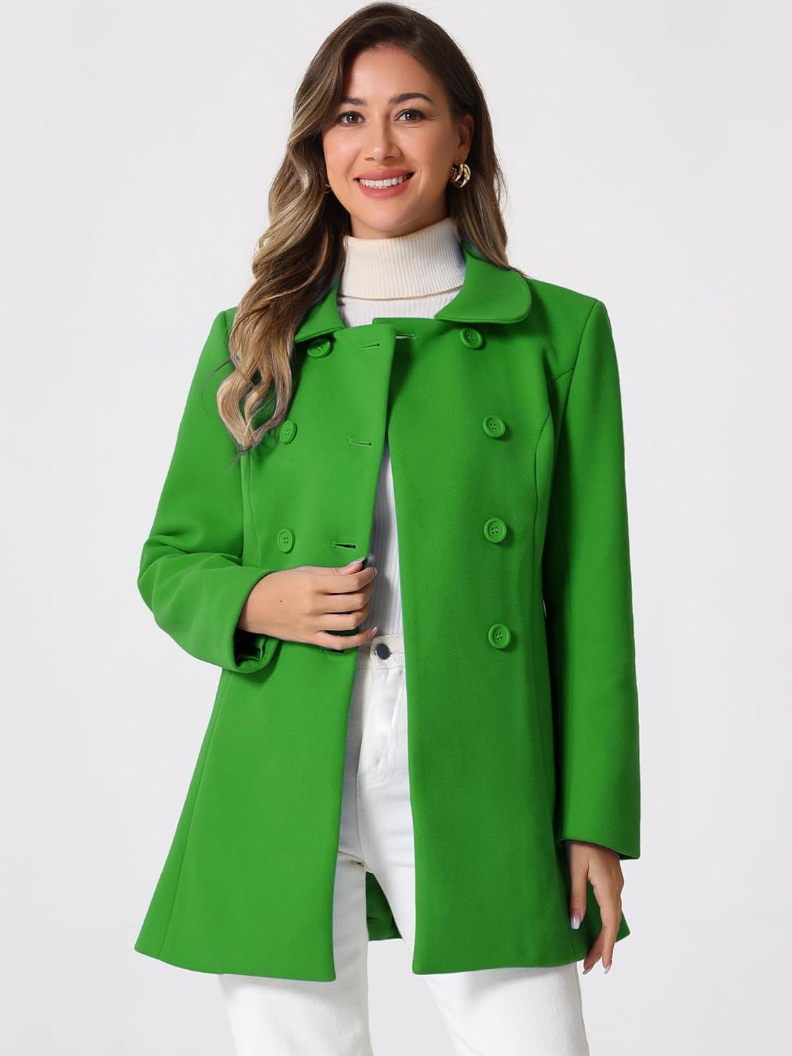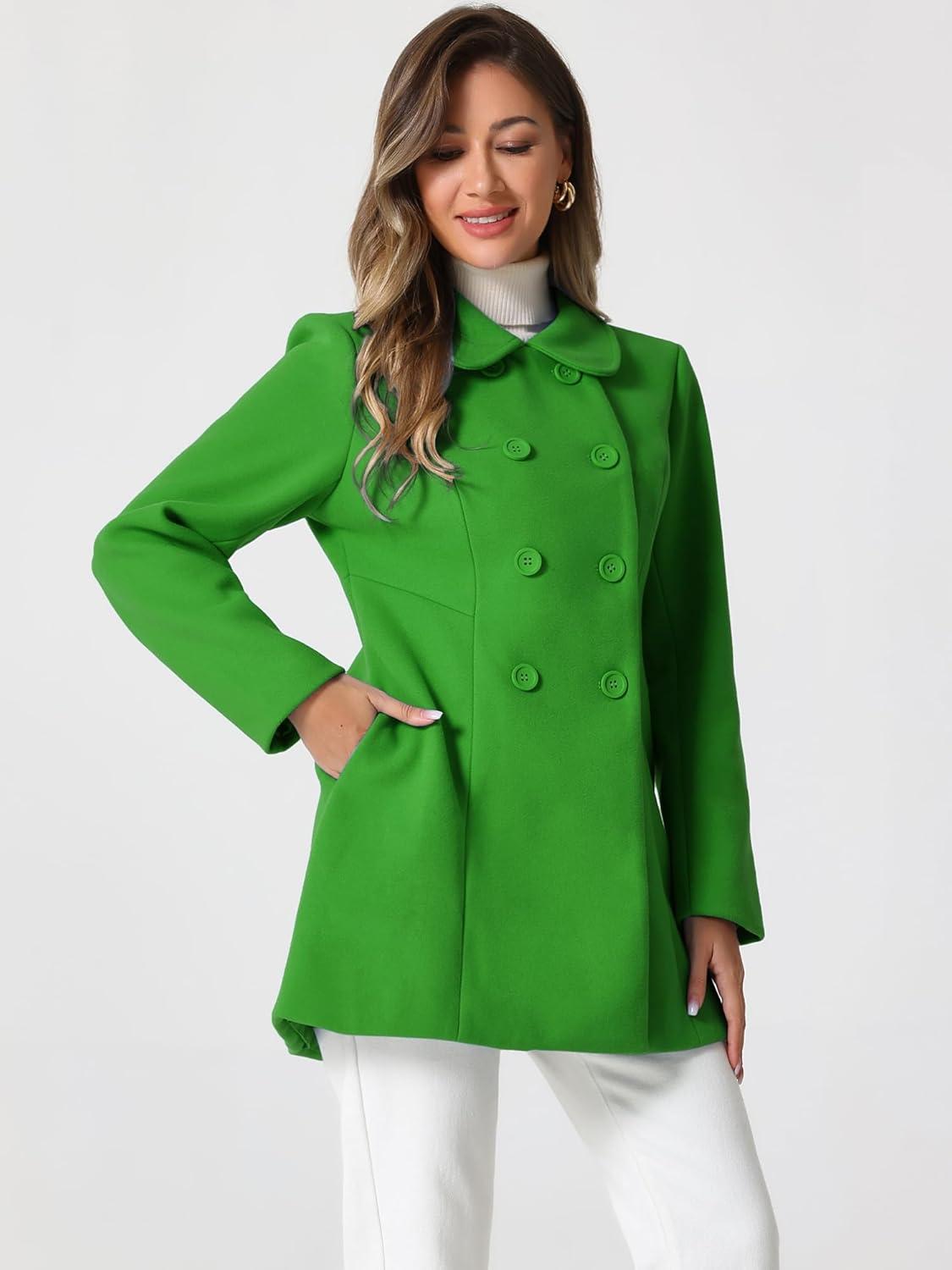 Allegra K Women’s Peter Pan Collar Double Breasted Winter Long Trench Pea Coat(Grass Green)