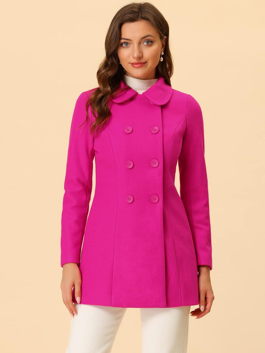 Allegra K Women’s Peter Pan Collar Double Breasted Winter Long Trench Pea Coat(Hot Pink)