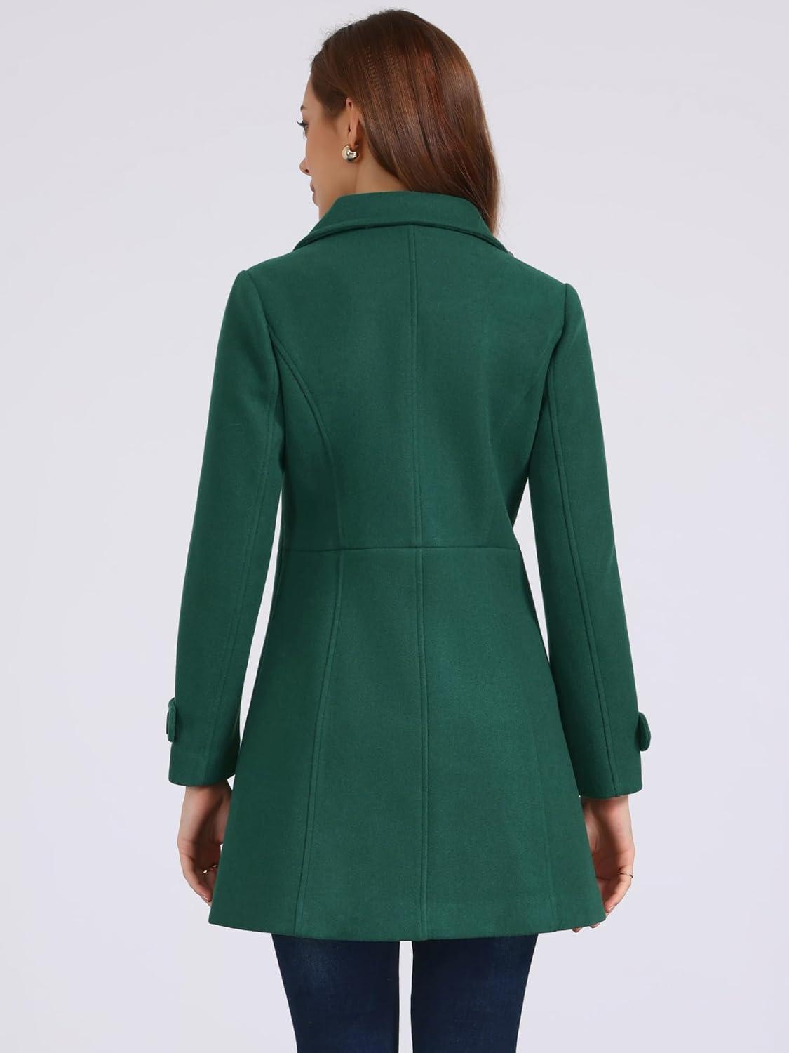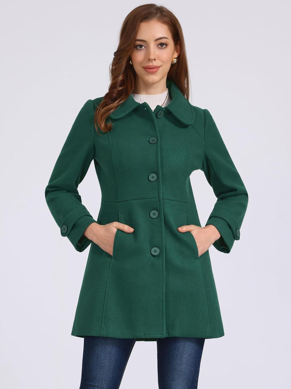 Allegra K Women’s Peter Pan Collar Overcoat Winter Dressy Button Single Breasted Long Coat(Dark Green)