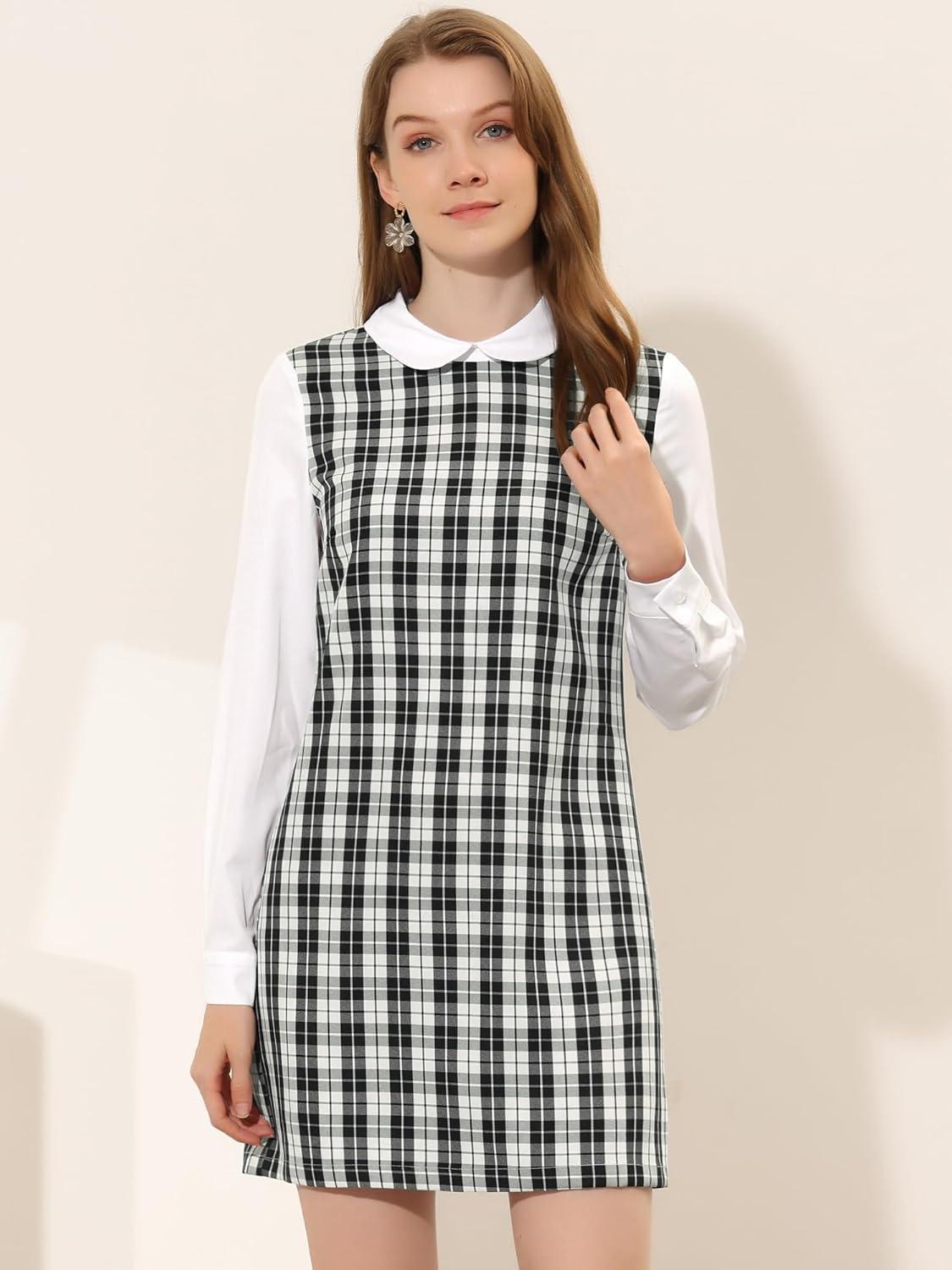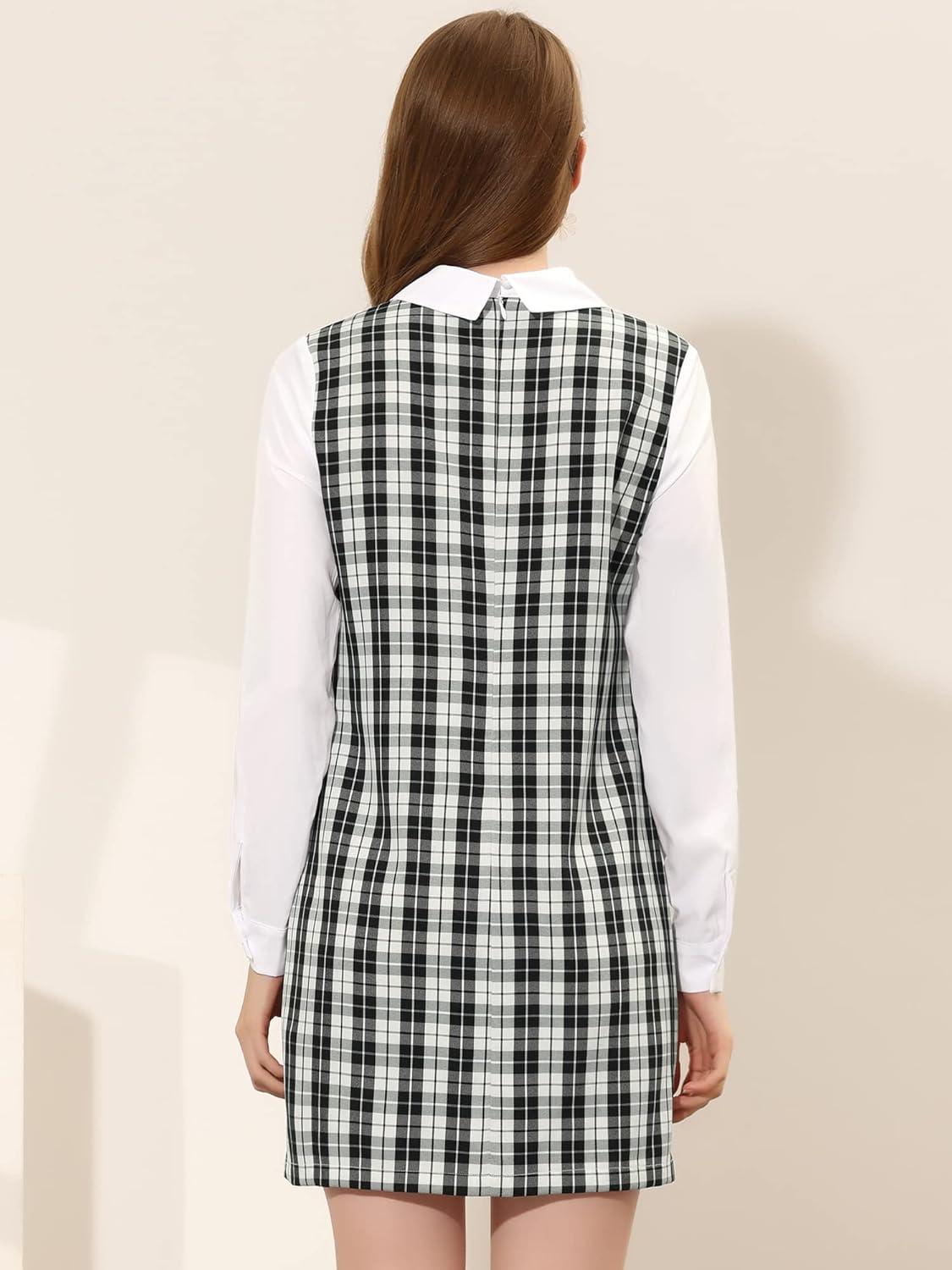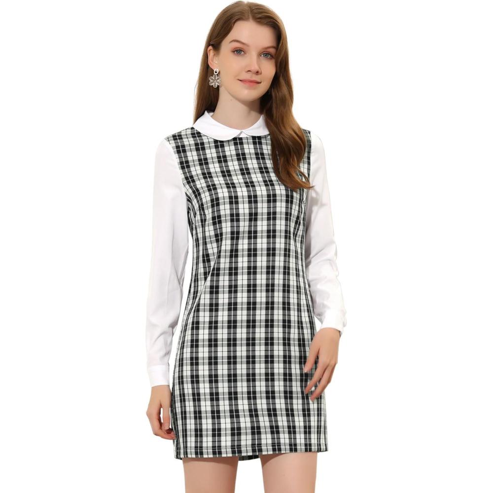 imageAllegra K Womens Peter Pan Dress 60s Clock Block Mini Long Sleeve DressesBlack