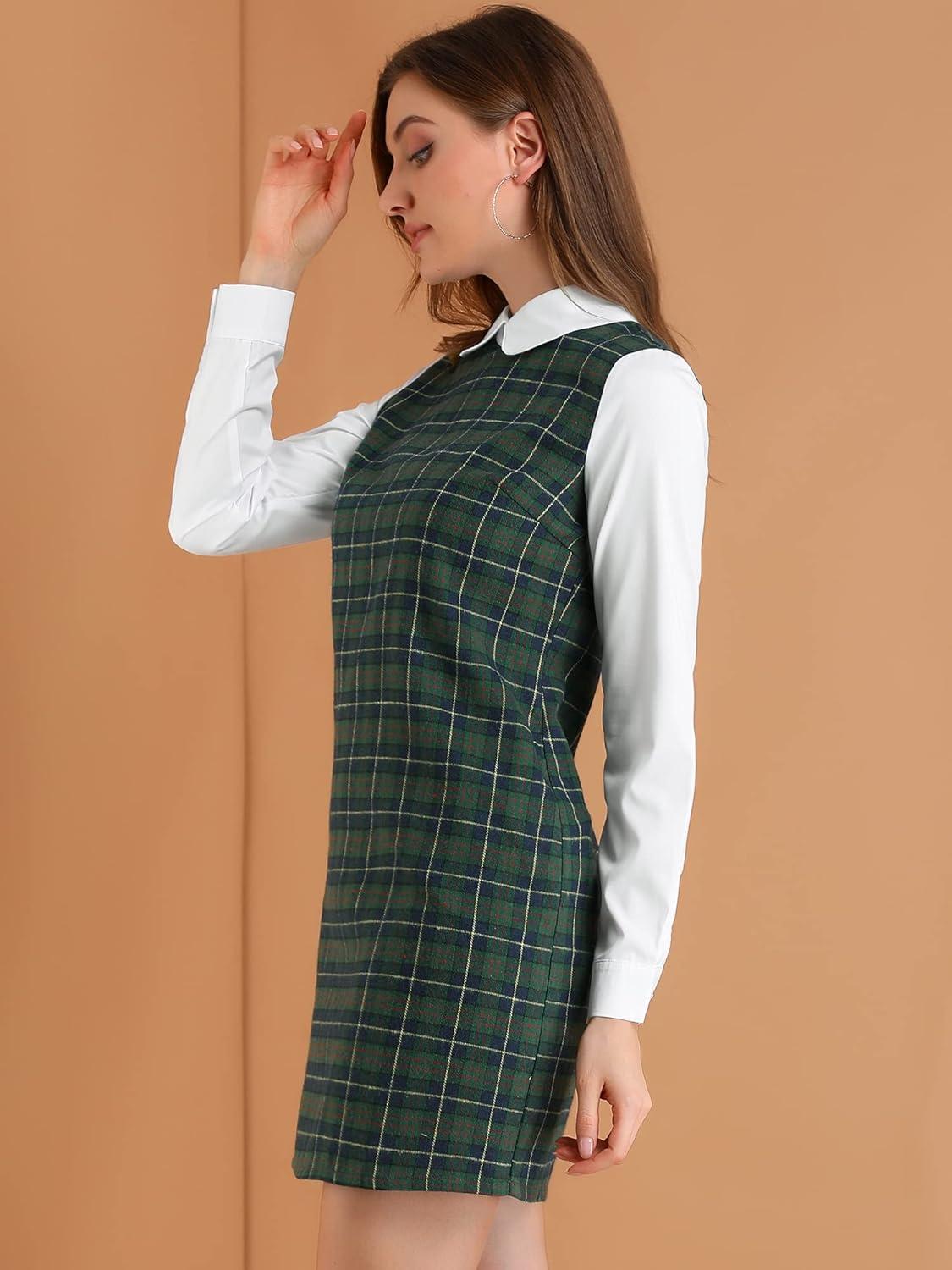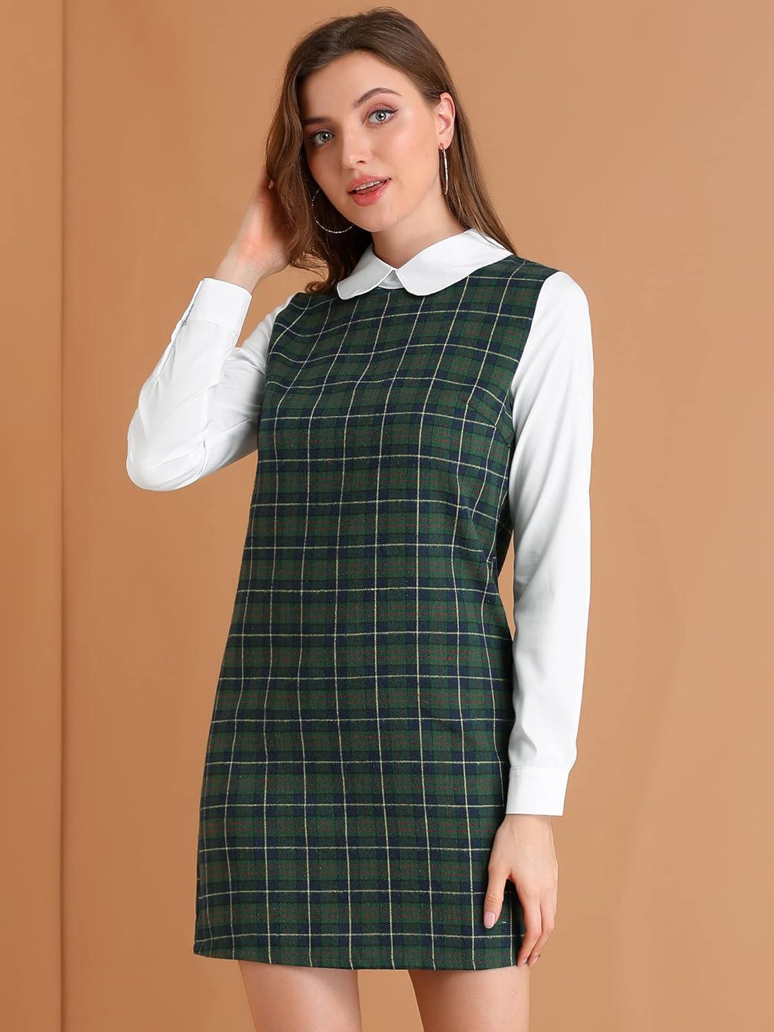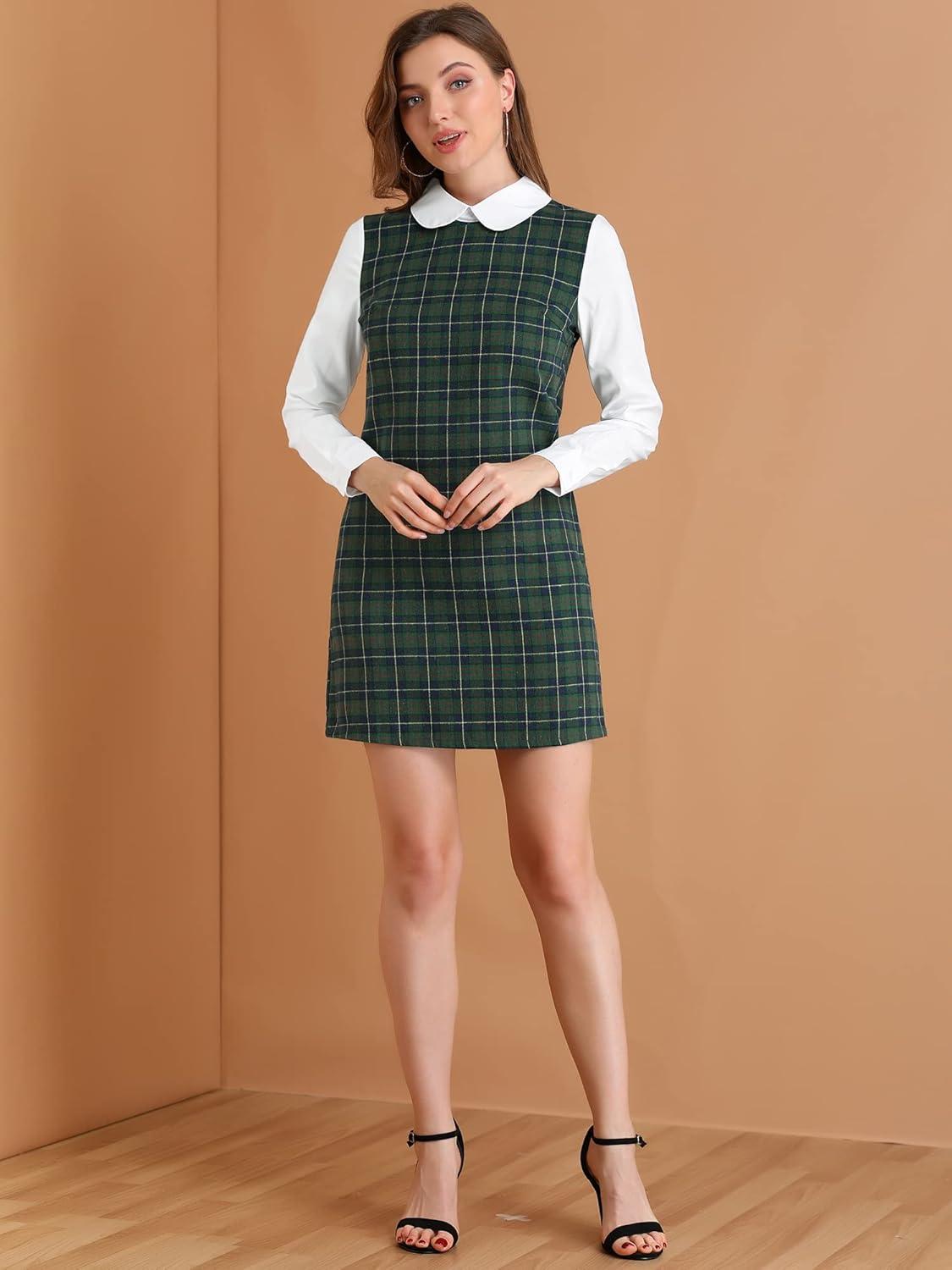 imageAllegra K Womens Peter Pan Dress 60s Clock Block Mini Long Sleeve DressesGreen Blue