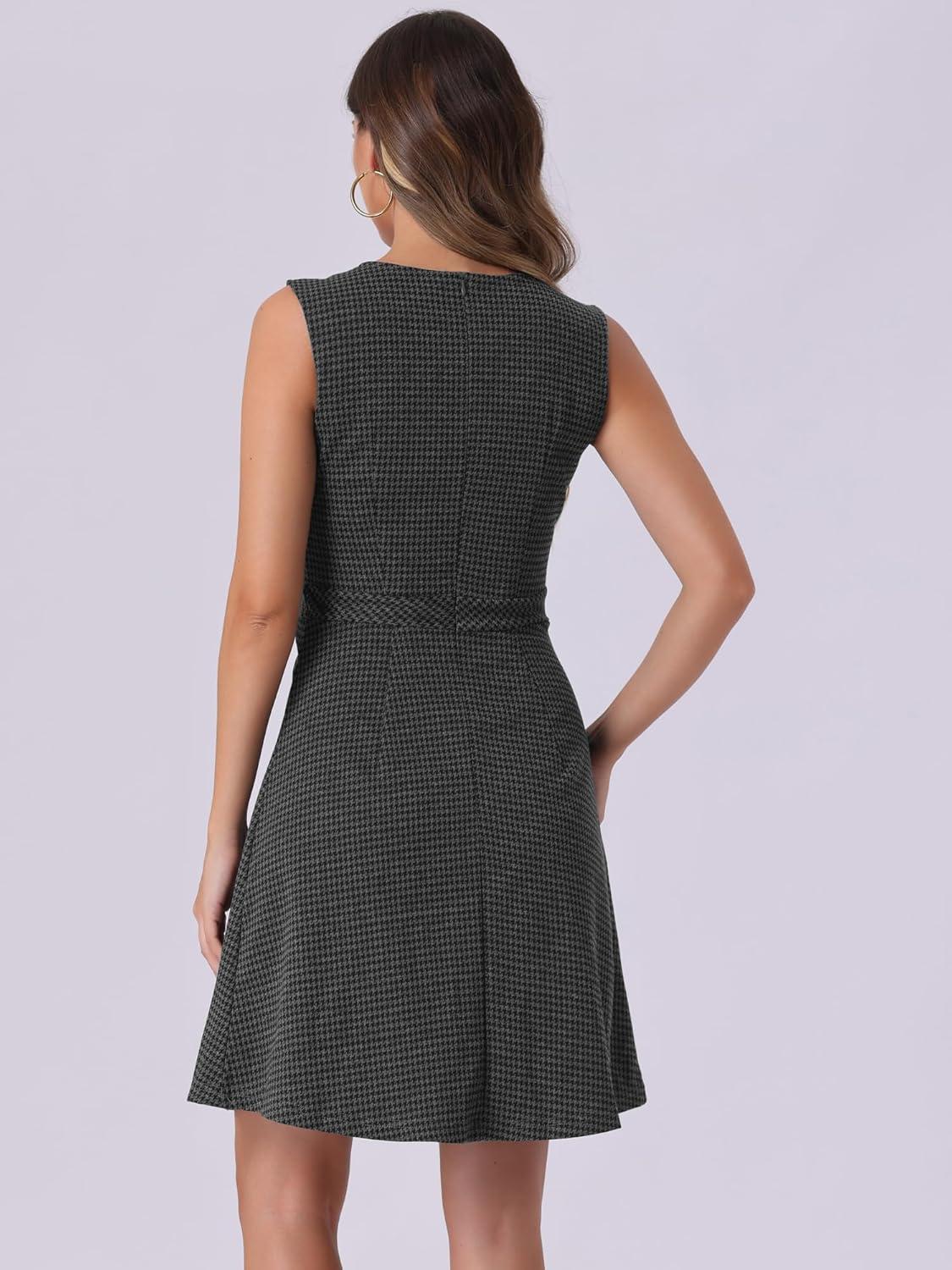Allegra K Women’s Plaid Dress Sleeveless A Line Vintage Houndstooth Work Dresses(Black Grey)