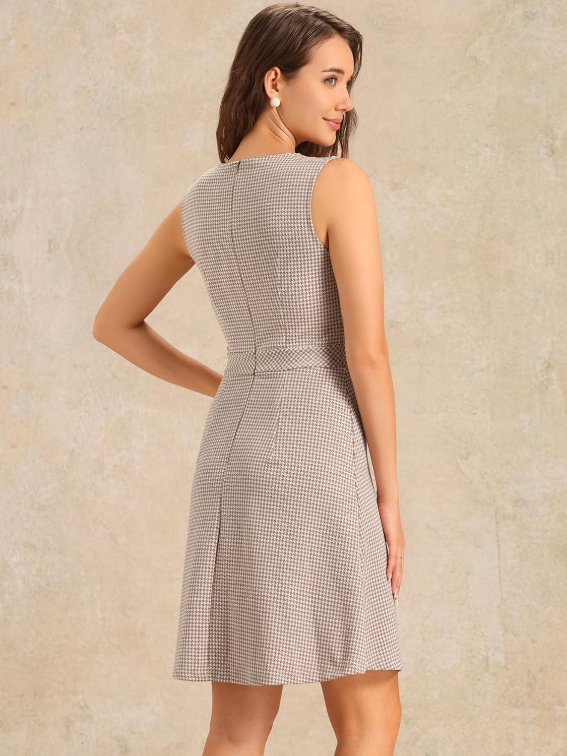 imageAllegra K Womens Plaid Dress Sleeveless A Line Vintage Houndstooth Work DressesLight Brown