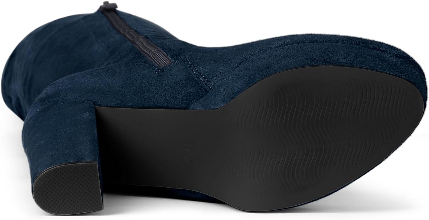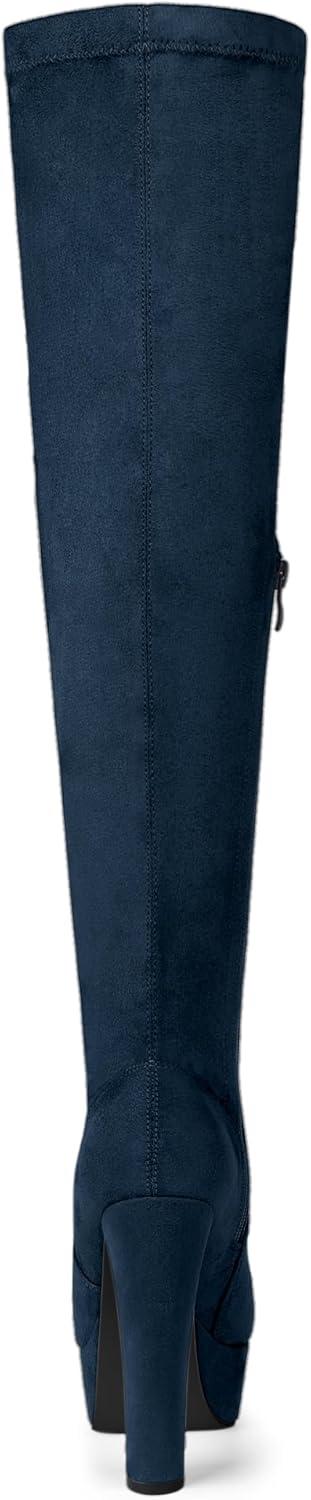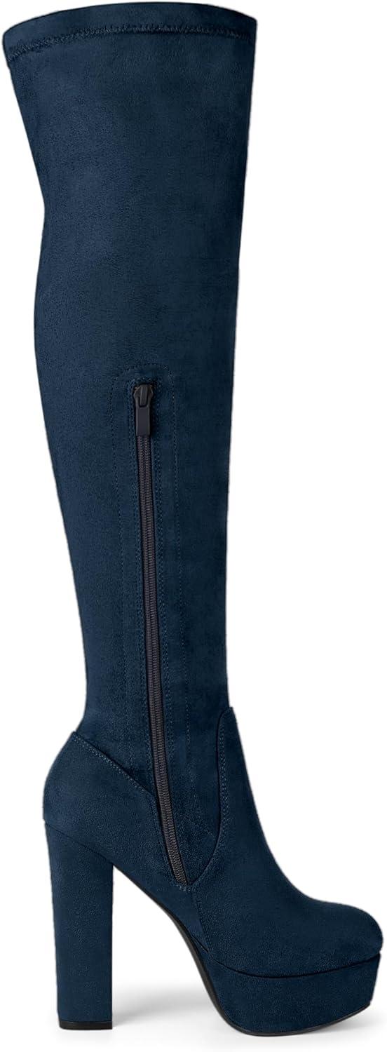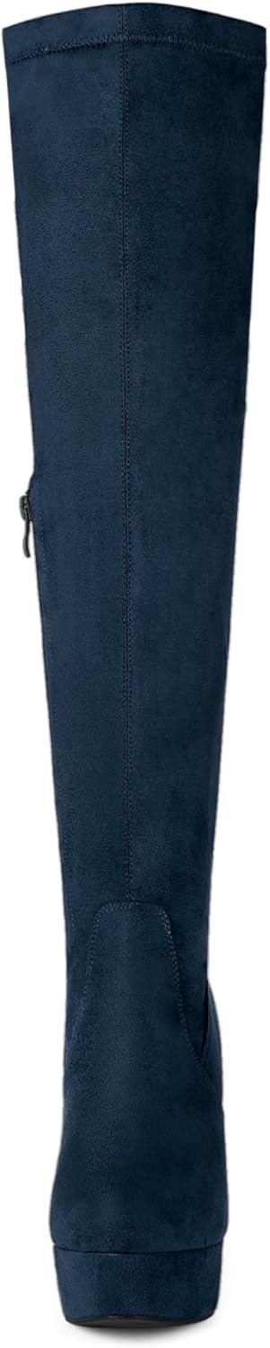 Allegra K Women's Platform Block Heel Over Knee High Boots(Navy Blue)