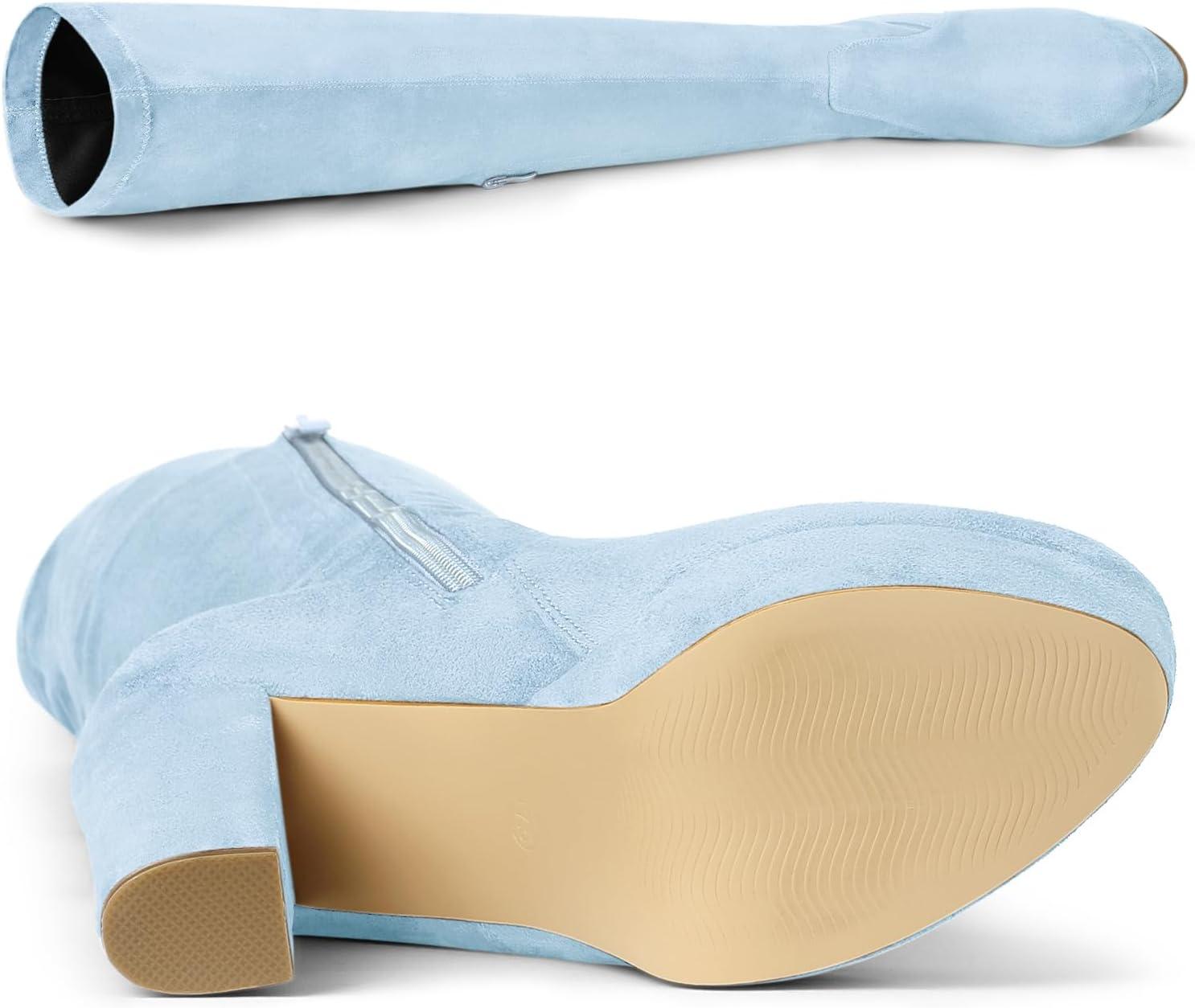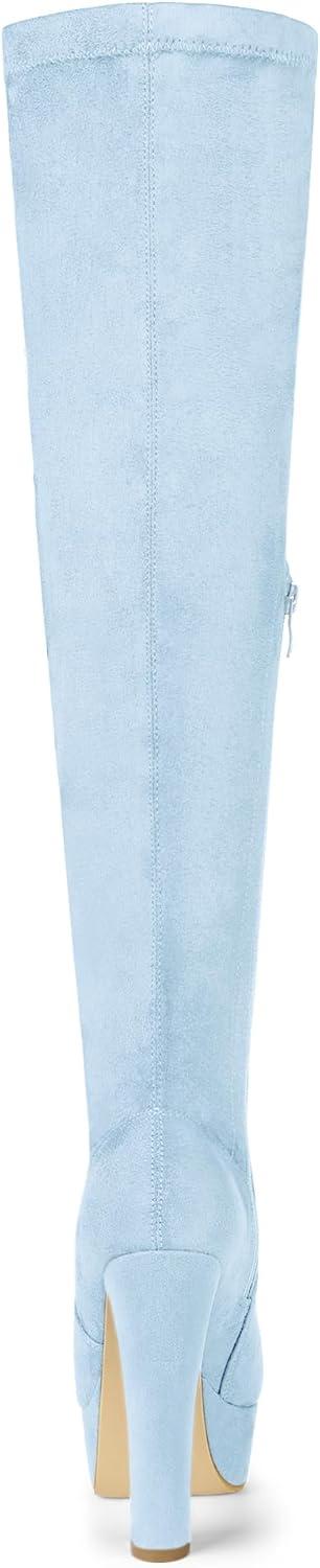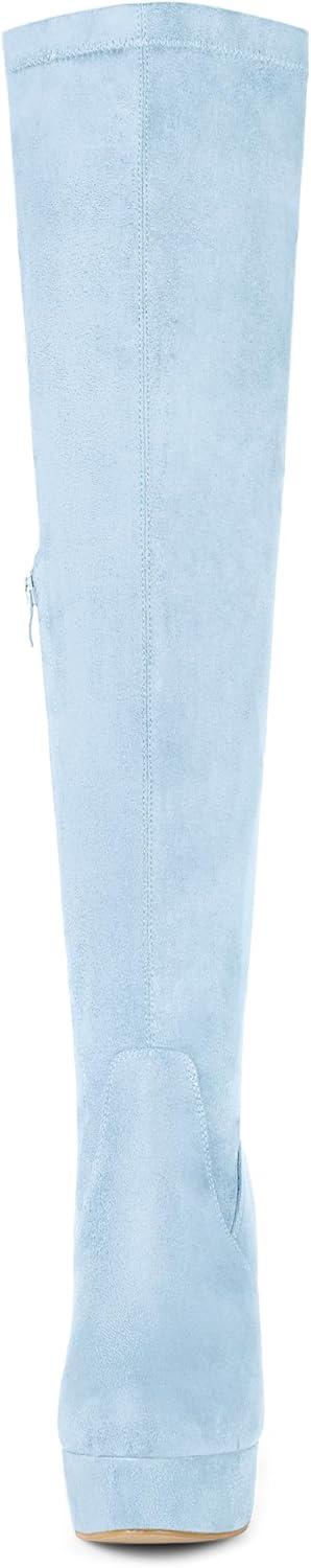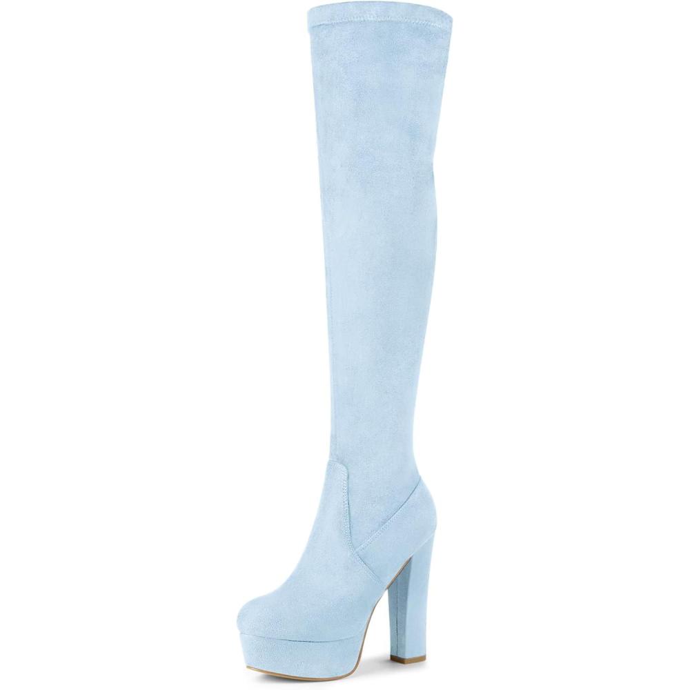 Allegra K Women's Platform Block Heel Over Knee High Boots(Sky Blue)