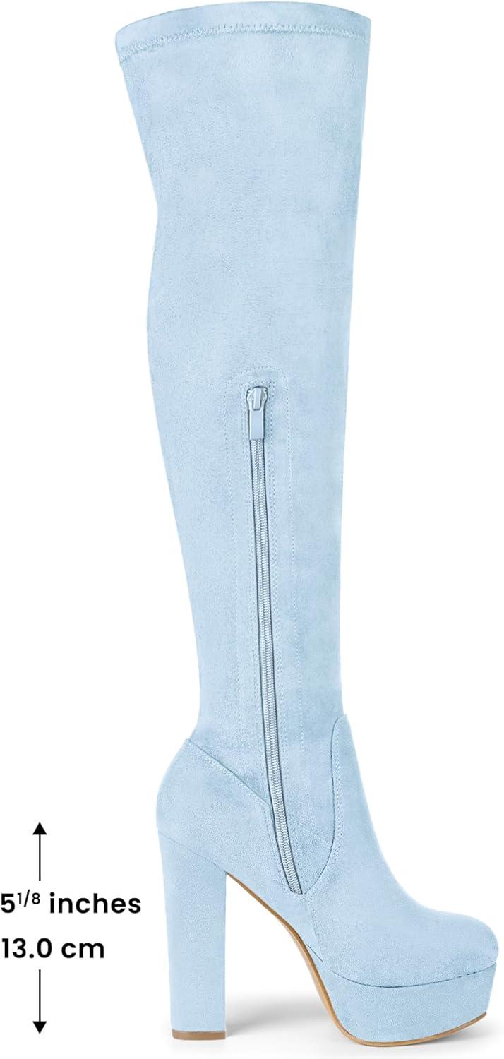 Allegra K Women’s Platform Block Heel Over Knee High Boots(Sky Blue)