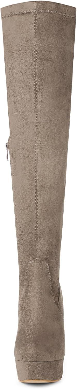 Allegra K Women's Platform Block Heel Over Knee High Boots(Taupe)