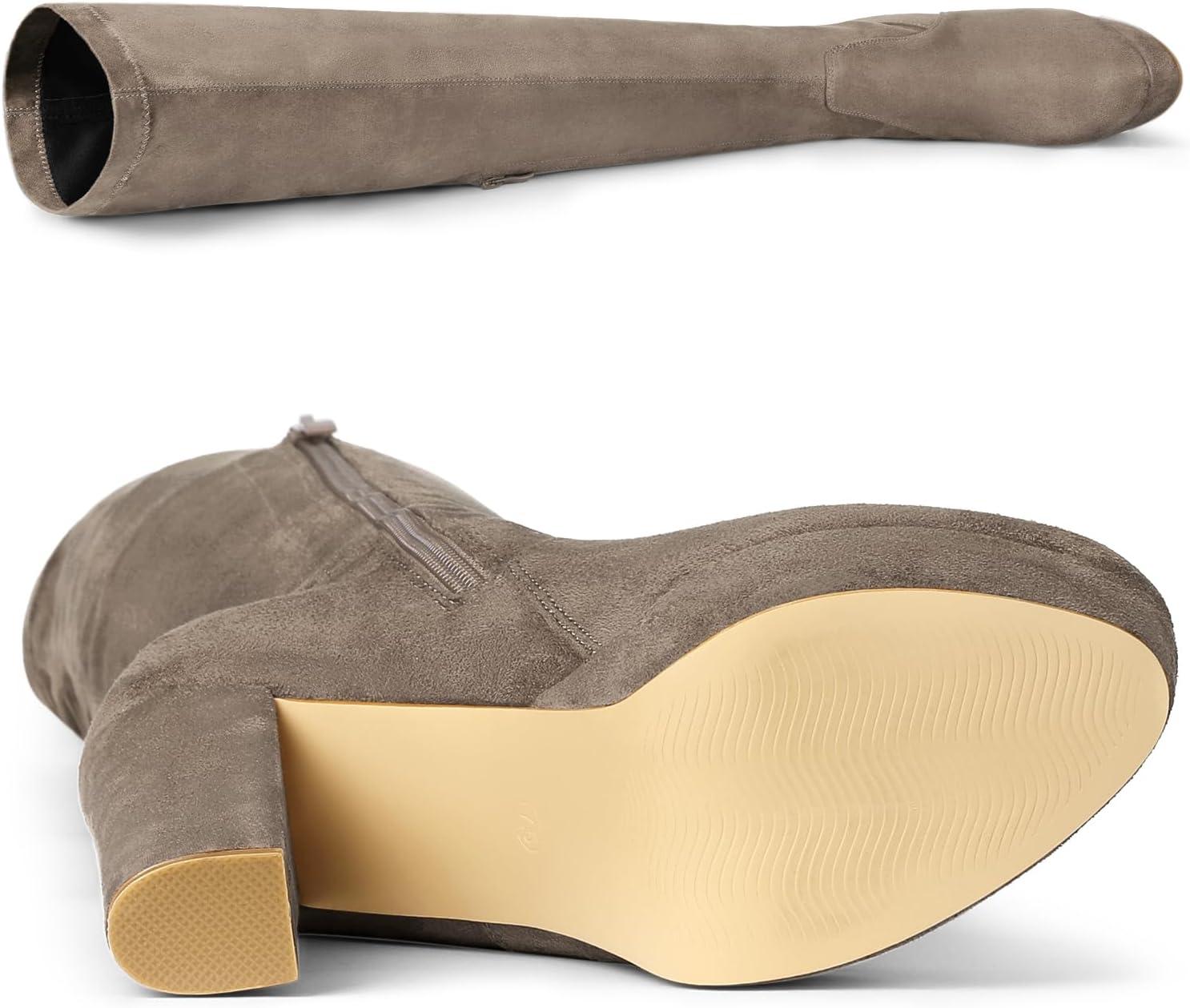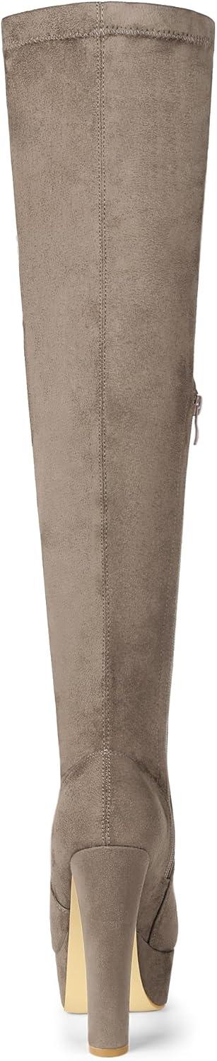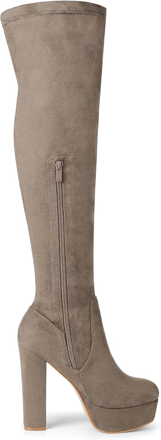 Allegra K Women’s Platform Block Heel Over Knee High Boots(Taupe)