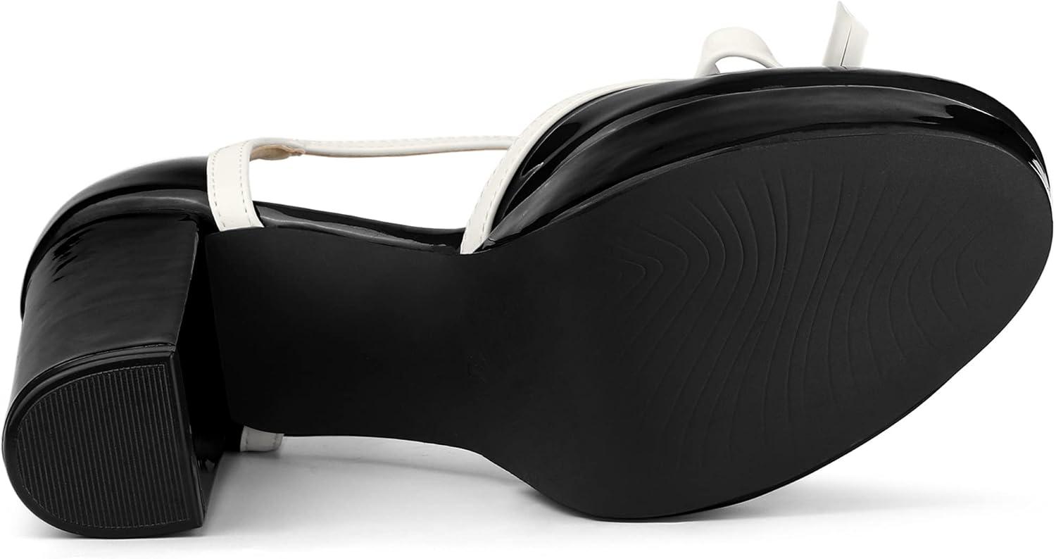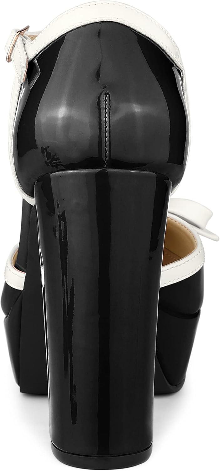 Allegra K Women’s Platform Bow t Strap Chunky Heels Pumps(Black)