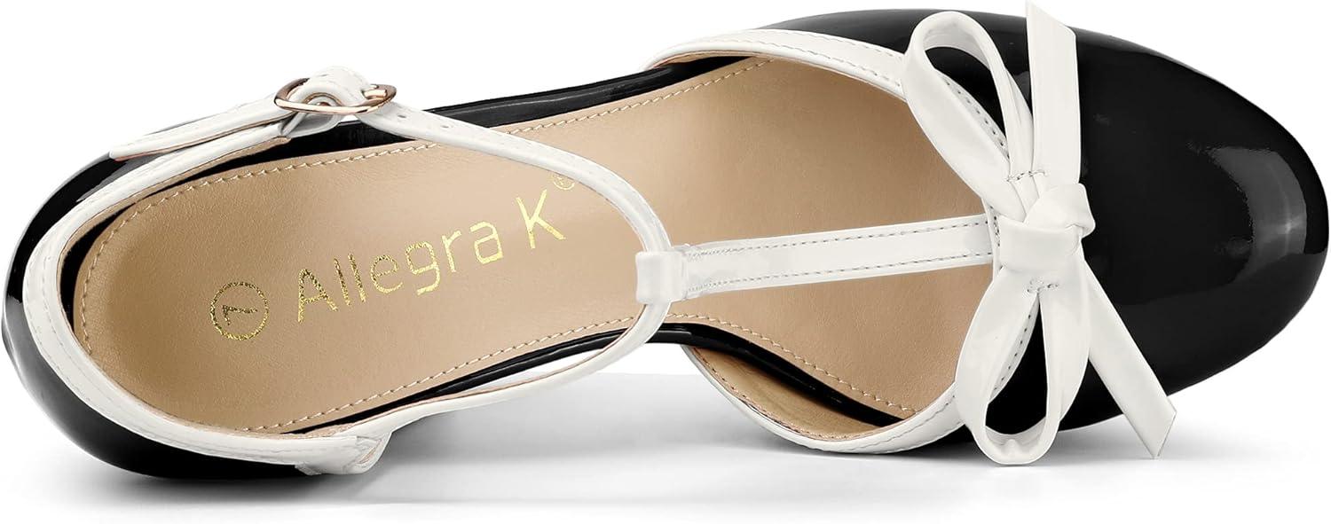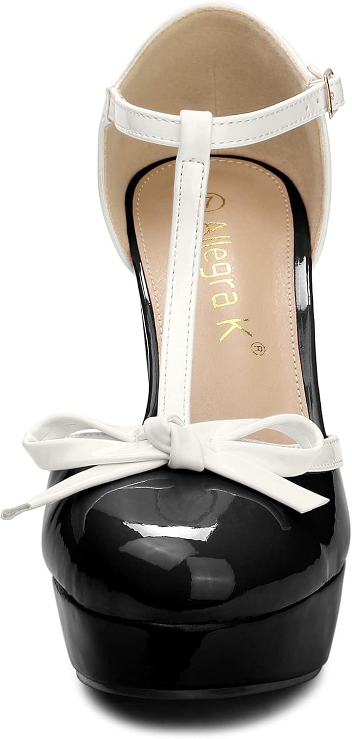 Allegra K Women's Platform Bow t Strap Chunky Heels Pumps(Black)