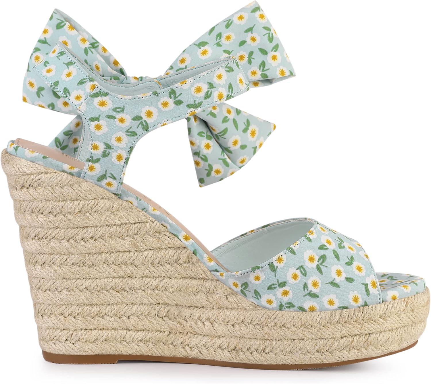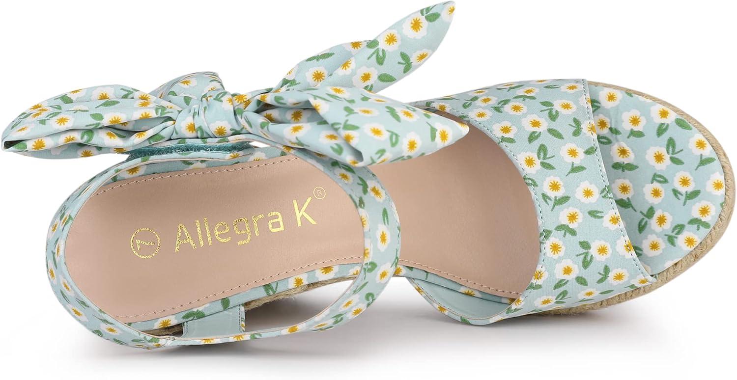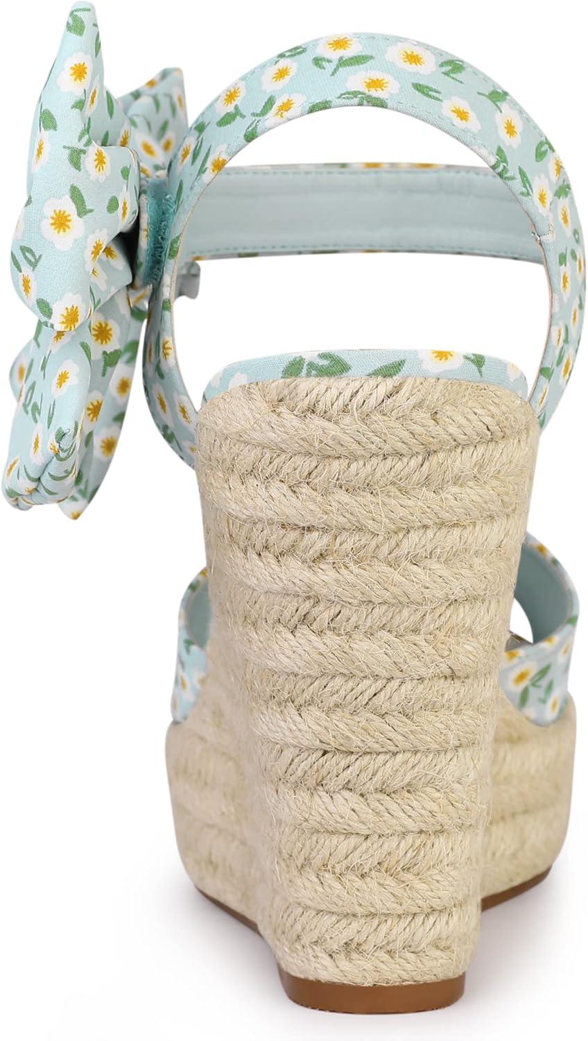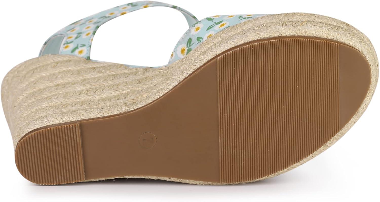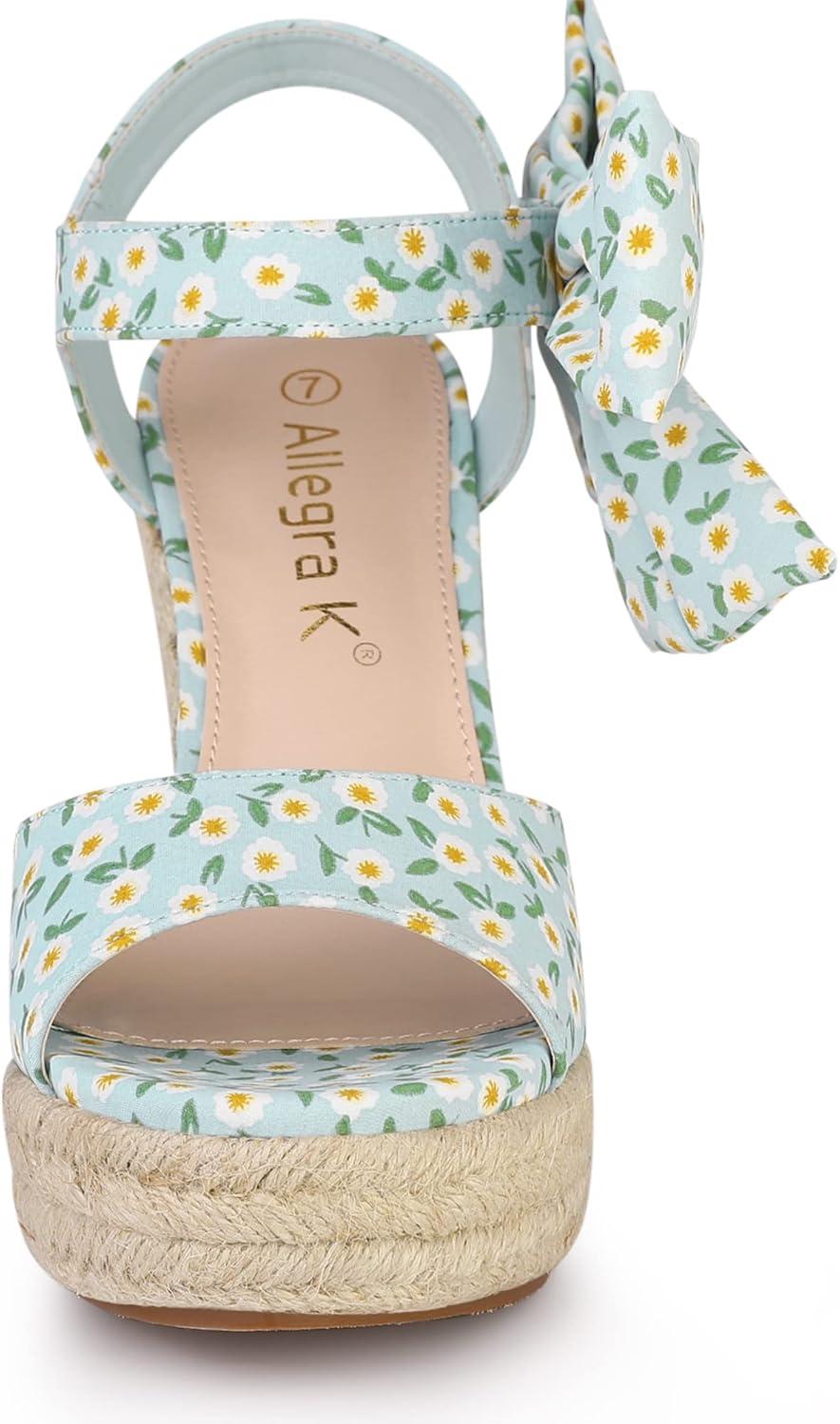 Allegra K Women’s Platform Floral Printed Slingback Espadrille Wedge Sandals(Sky Blue)