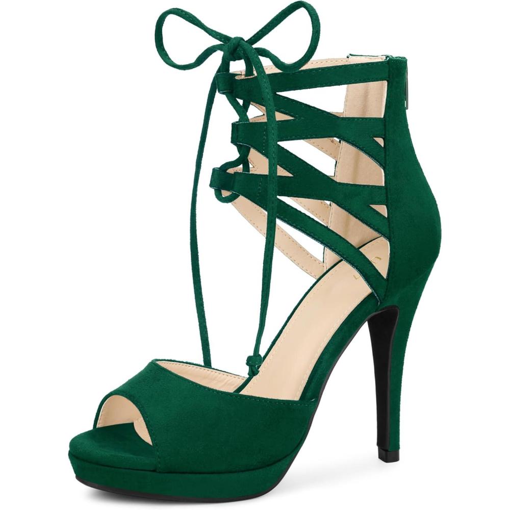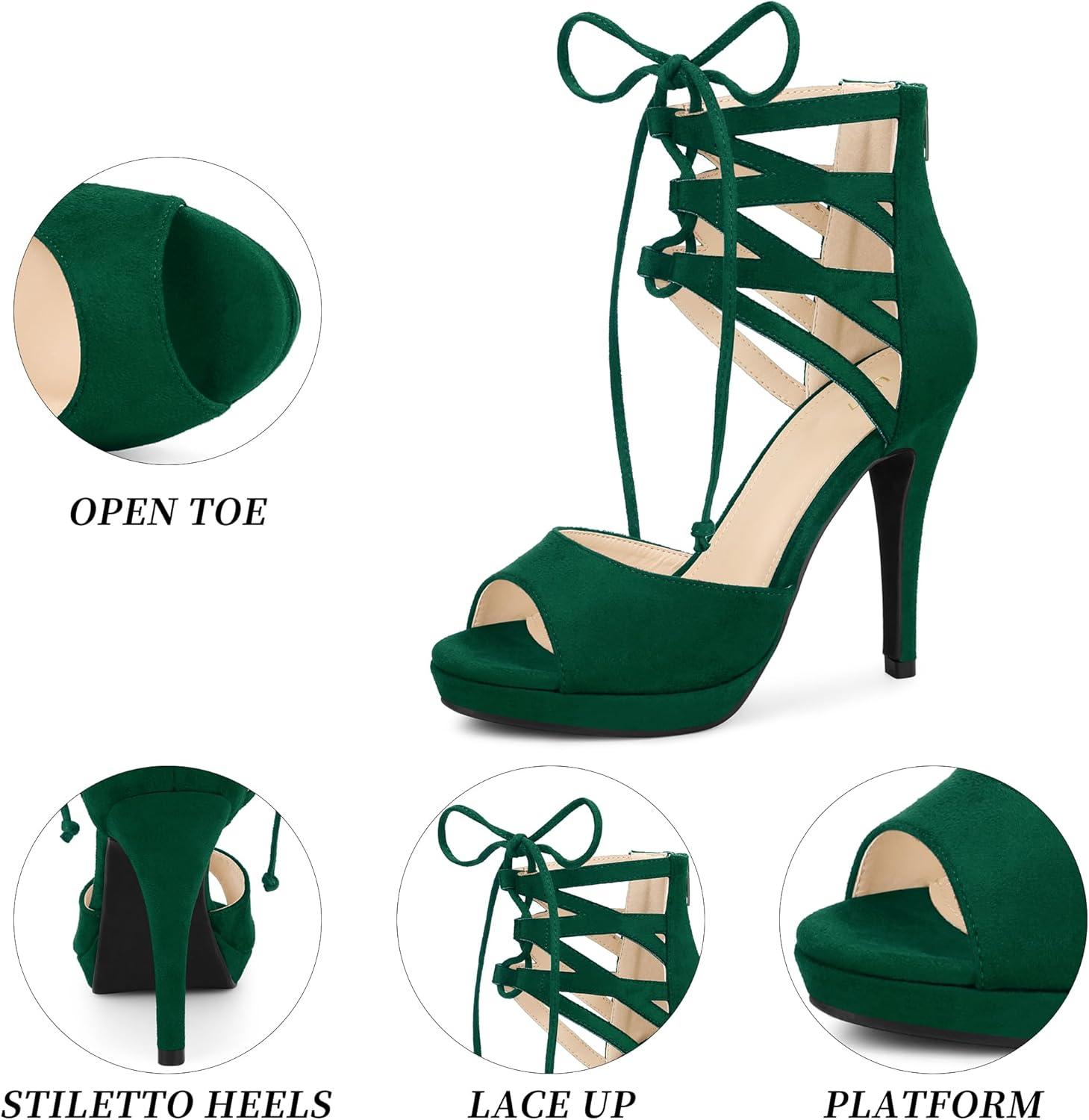 Allegra K Women’s Platform Gladiator Strappy Open Toe Stiletto High Heel Sandals(Emerald Green)