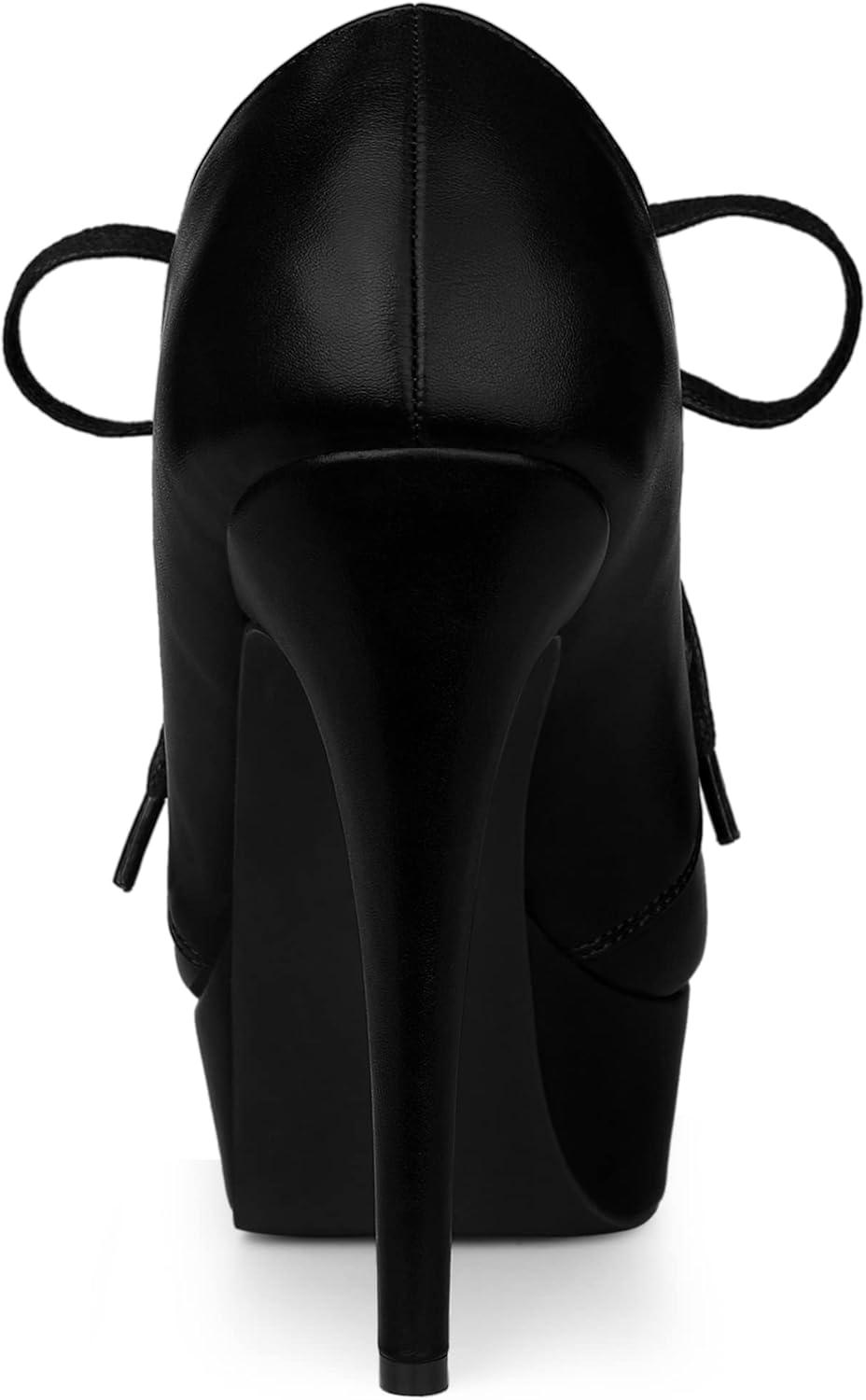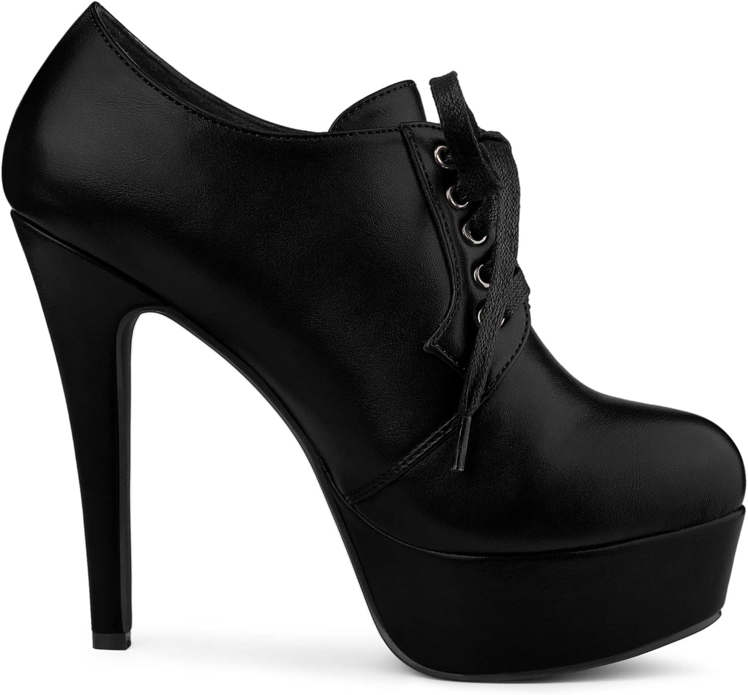 Allegra K Women’s Platform Lace Up Round Toe Stiletto High Heel Ankle Booties(Black)