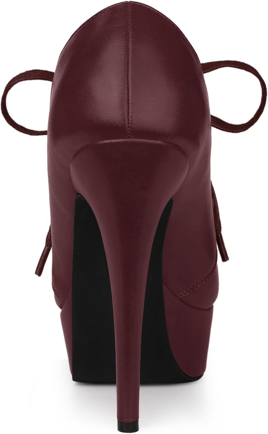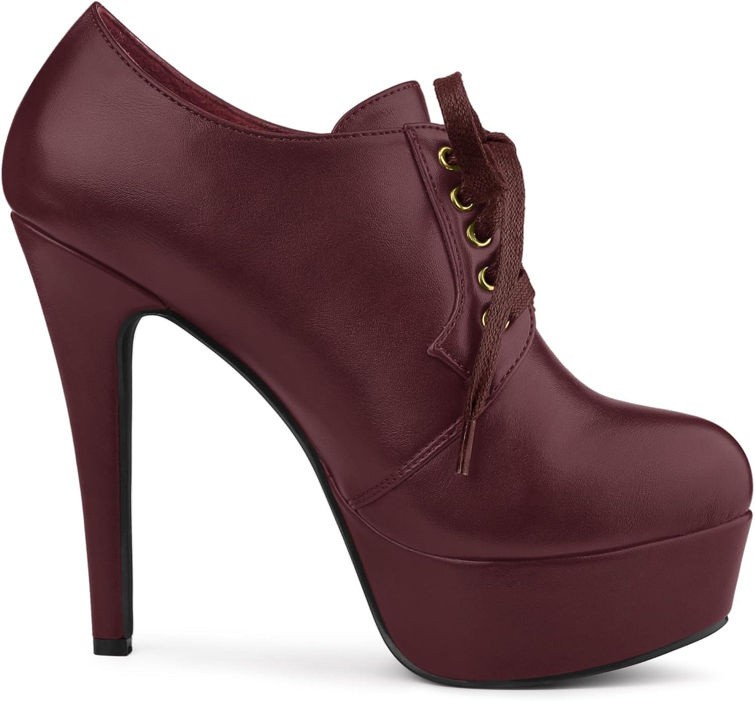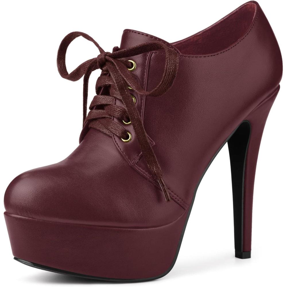 Allegra K Women’s Platform Lace Up Round Toe Stiletto High Heel Ankle Booties(Burgundy)