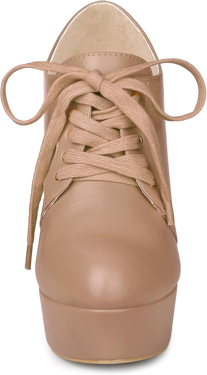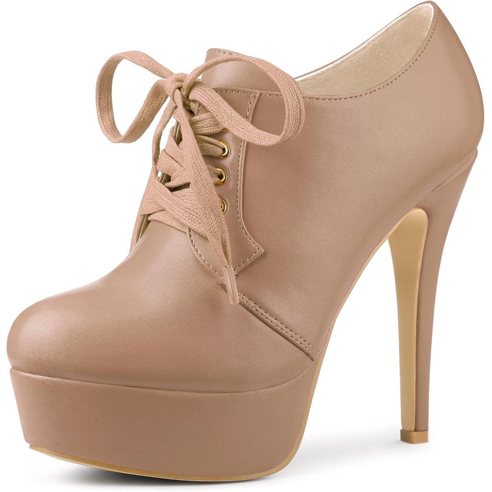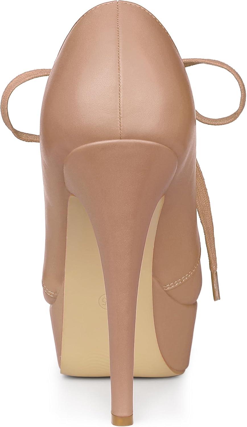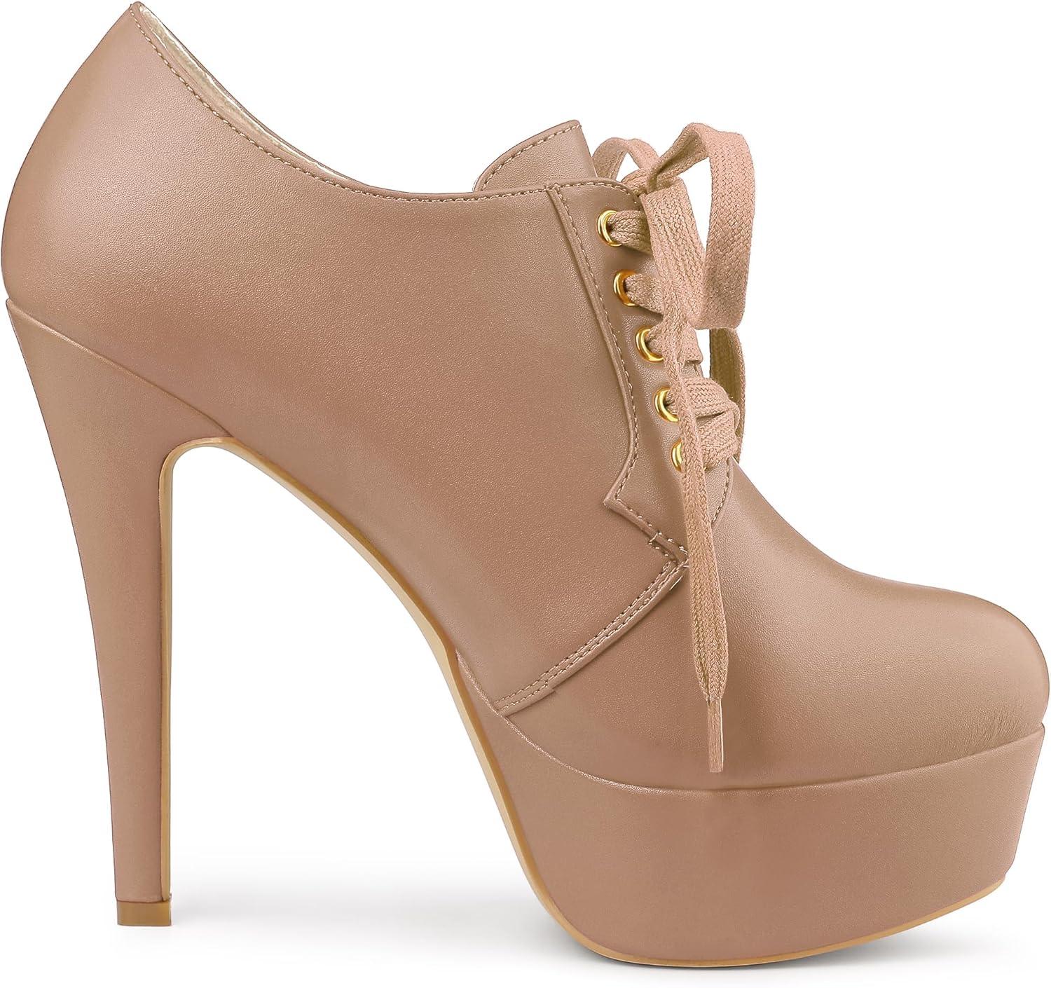 Allegra K Women’s Platform Lace Up Round Toe Stiletto High Heel Ankle Booties(Nude)