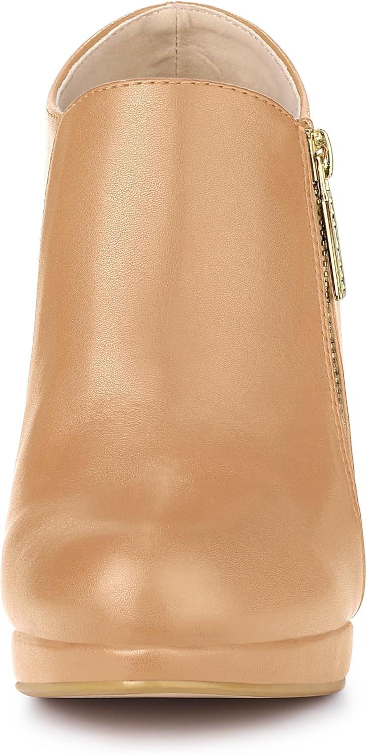 Allegra K Women's Platform Round Toe Chunky Heelss Ankle Booties(Nude)