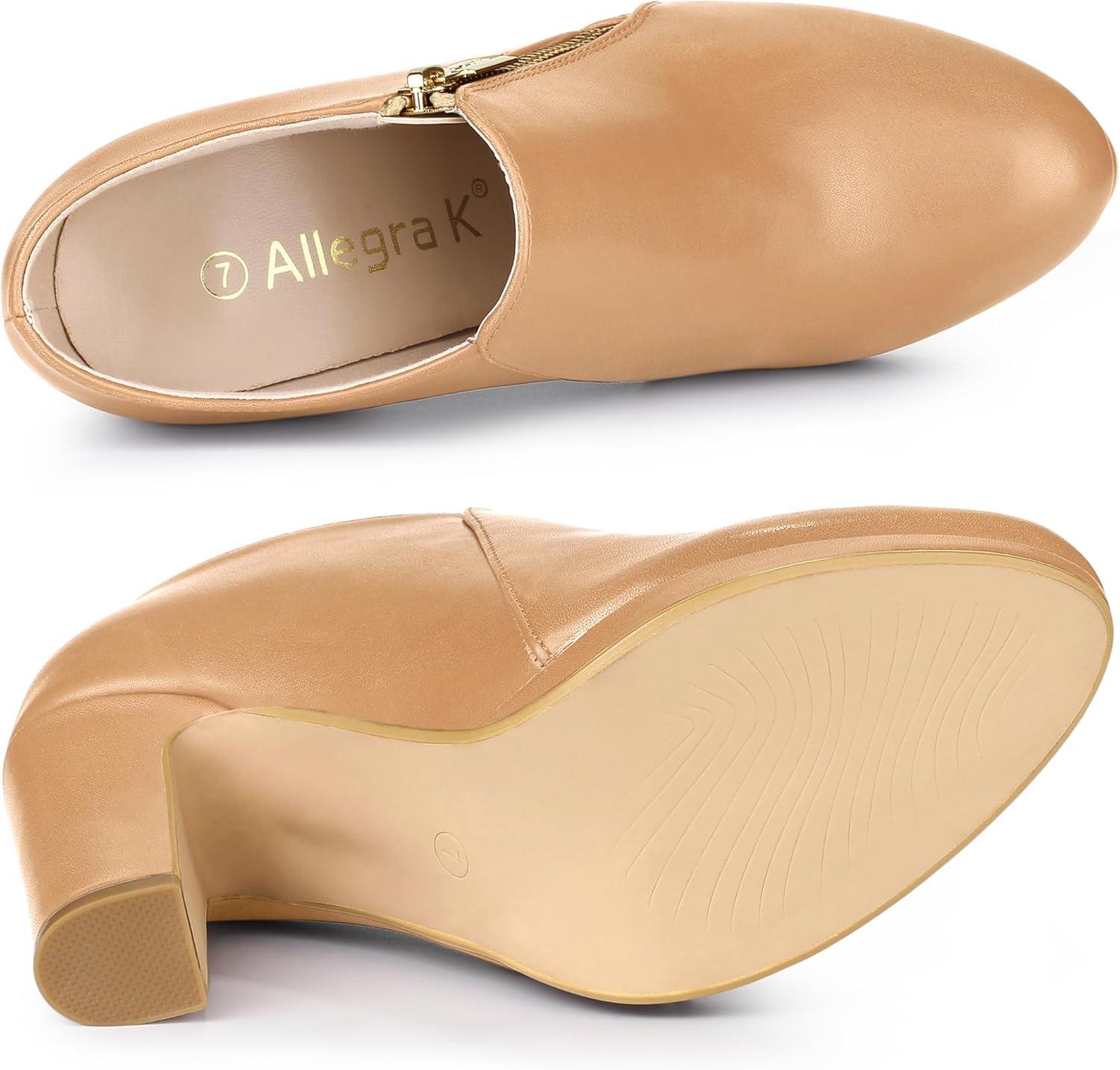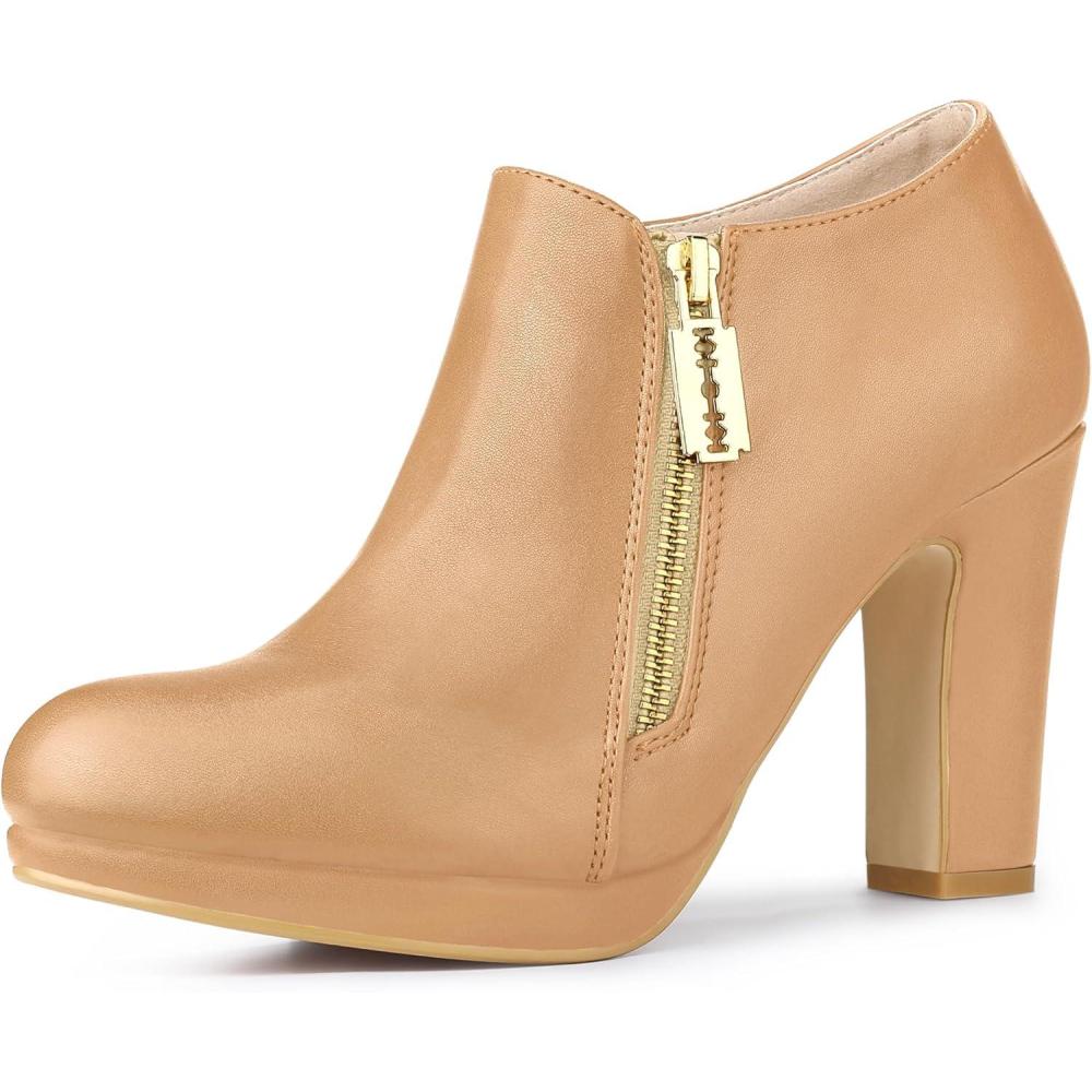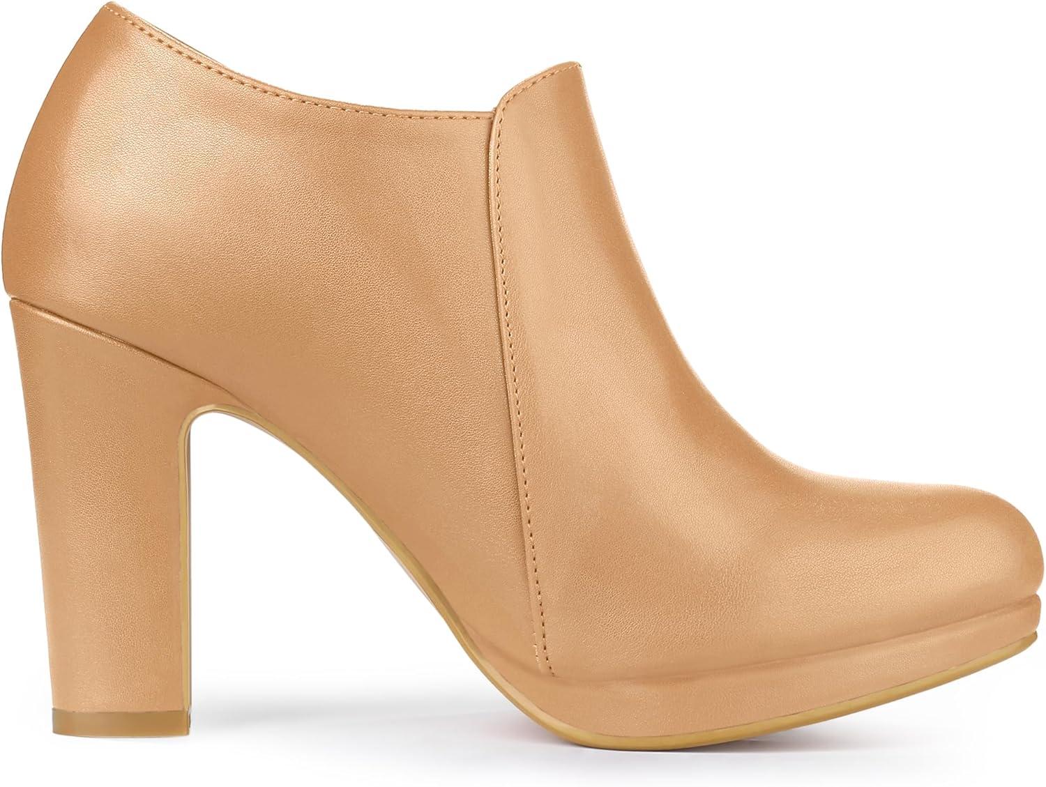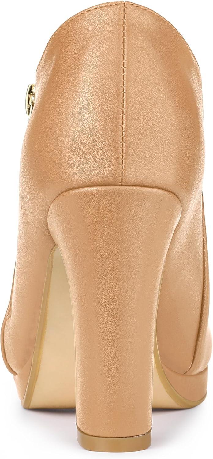 Allegra K Women’s Platform Round Toe Chunky Heelss Ankle Booties(Nude)