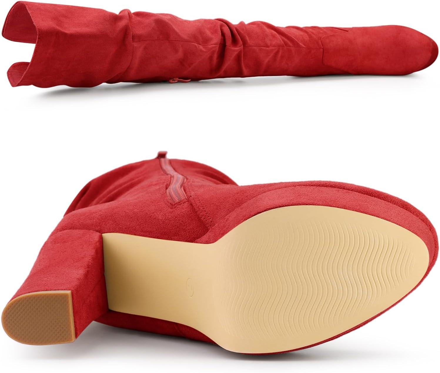 Allegra K Women’s Platform Round Toe Zipper Slouch Heel Over the Knee Thigh High Boots(Red)