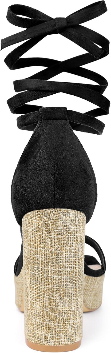 Allegra K Women's Platform Sandals Square Toe Chunky Heels Lace Up Sandals(Black)