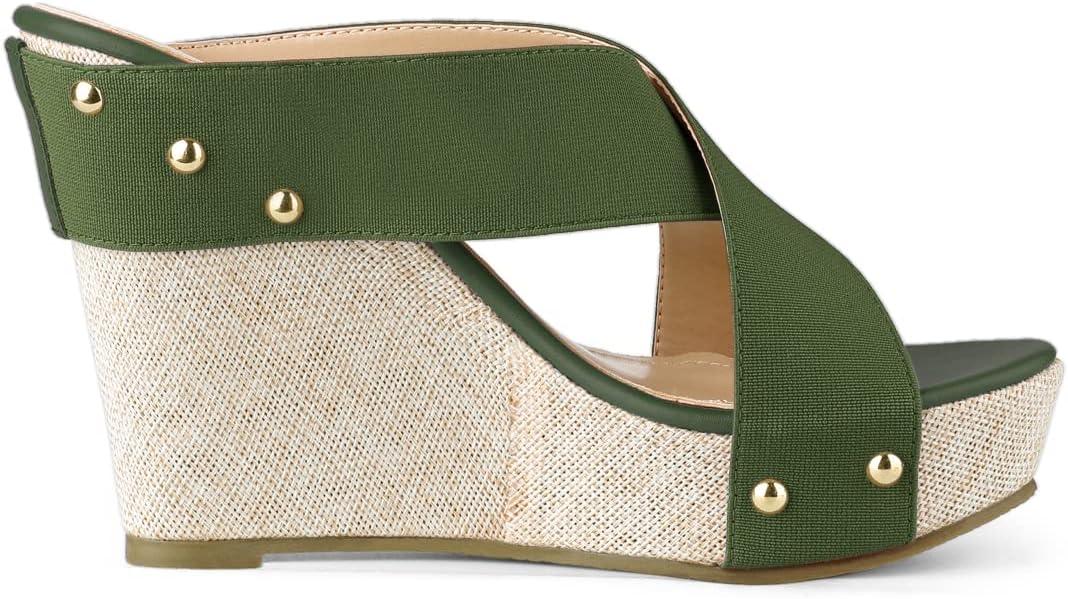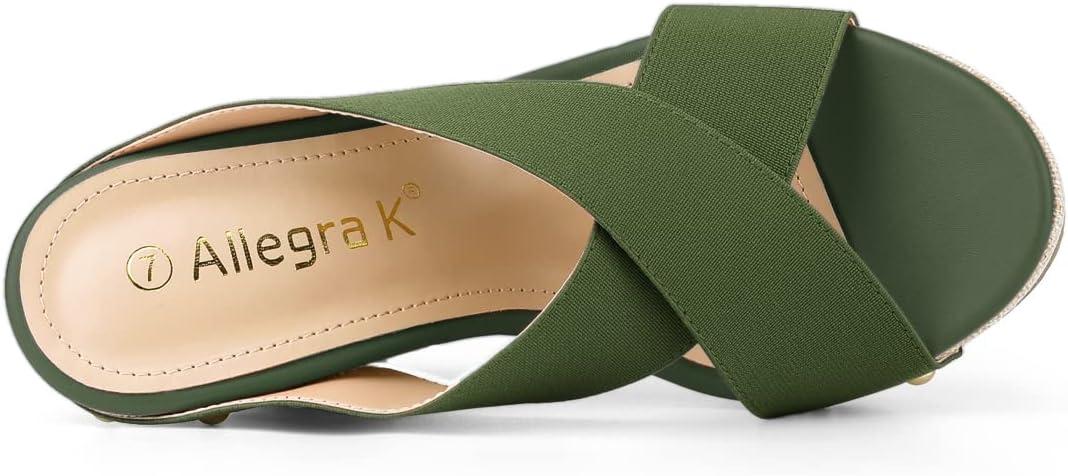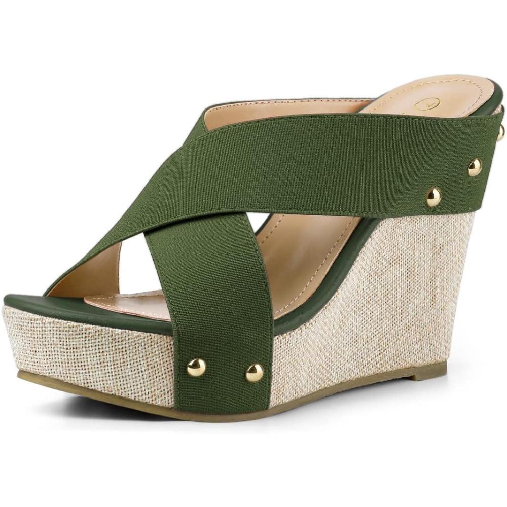 Allegra K Women’s Platform Slide Wedge Sandals(Dark Green)