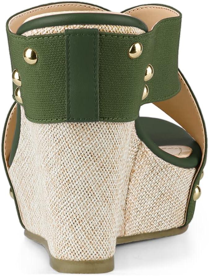 Allegra K Women's Platform Slide Wedge Sandals(Dark Green)