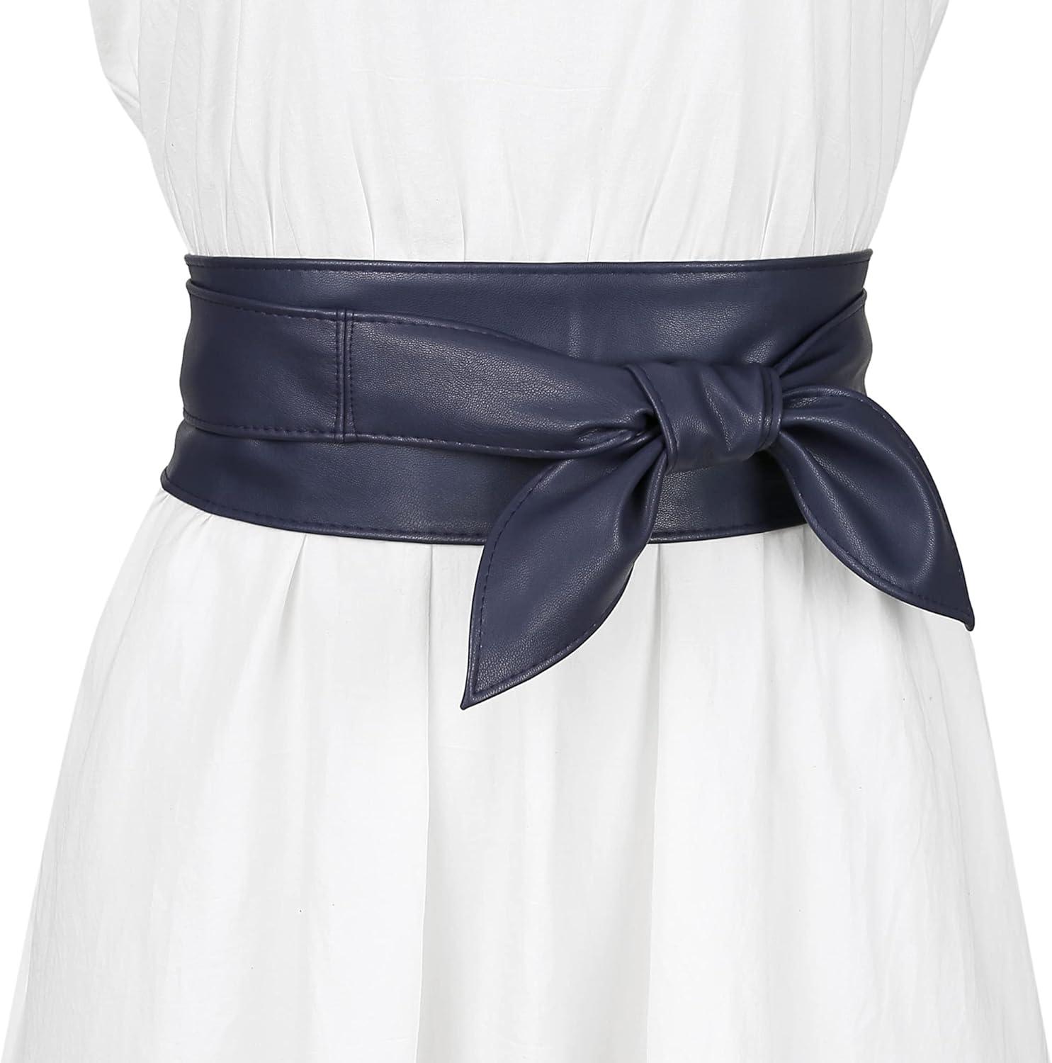 Allegra K Womens Plus Size Obi Belts, Bowknot Self-Tie Wrap Around Wide Sash Waistband Belt for Dresses(Navy Blue)