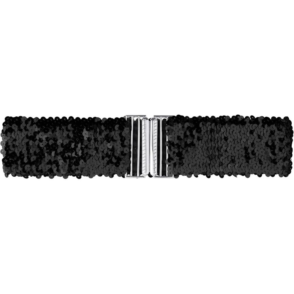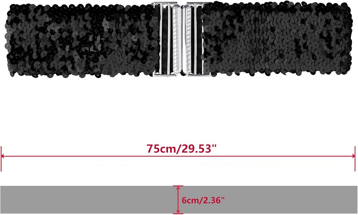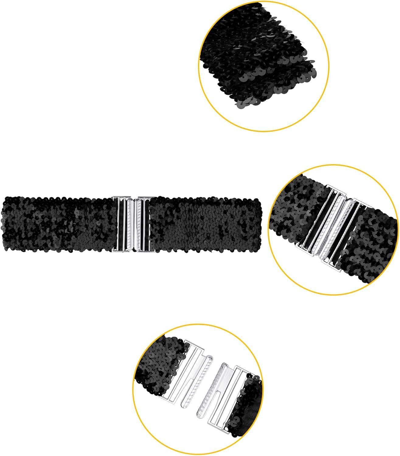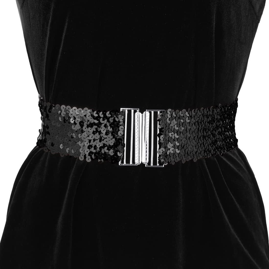 Allegra K Womens Plus Size Stretchy Waist Belts Metal Interlock Buckles Sequins Decor Belts for Dresses(Black)