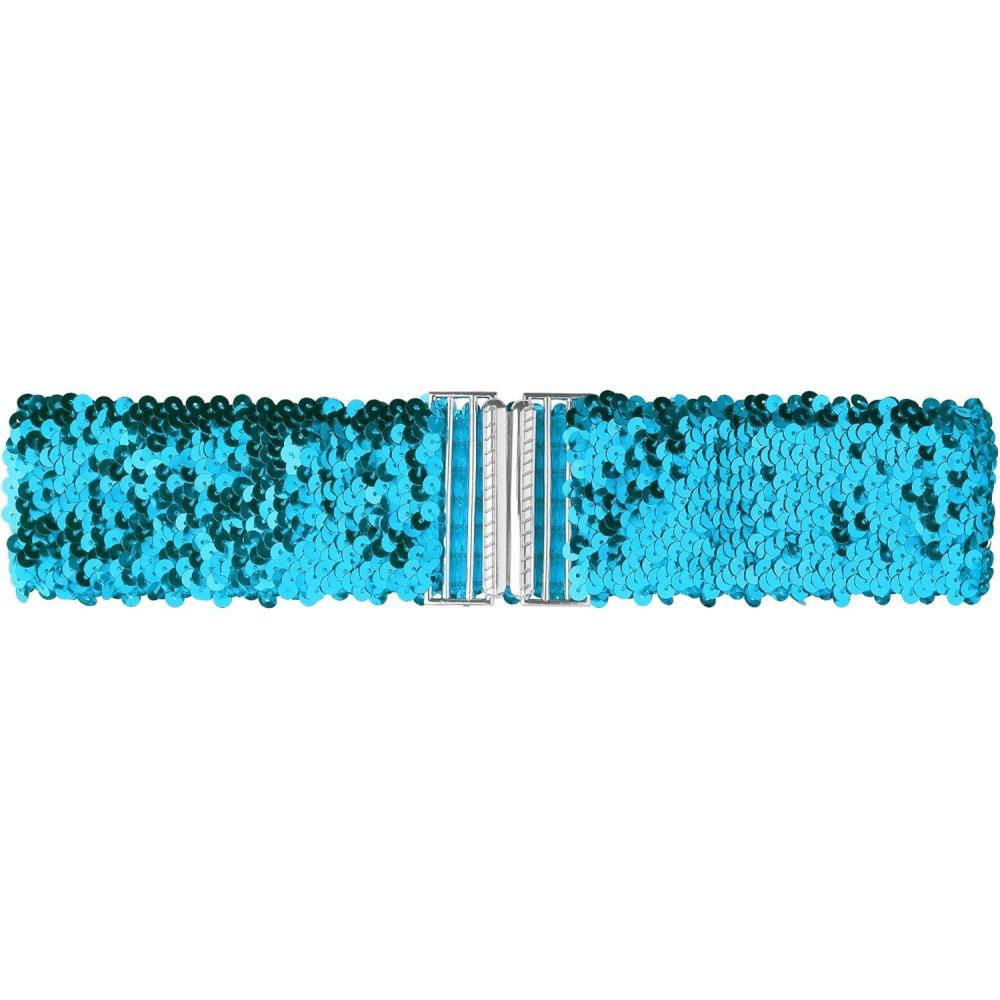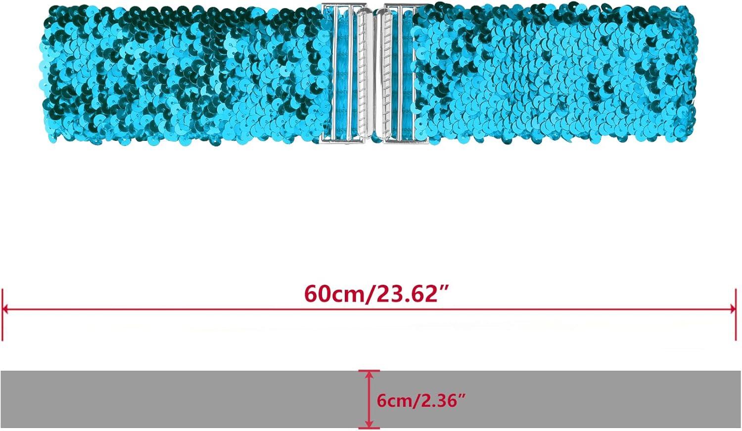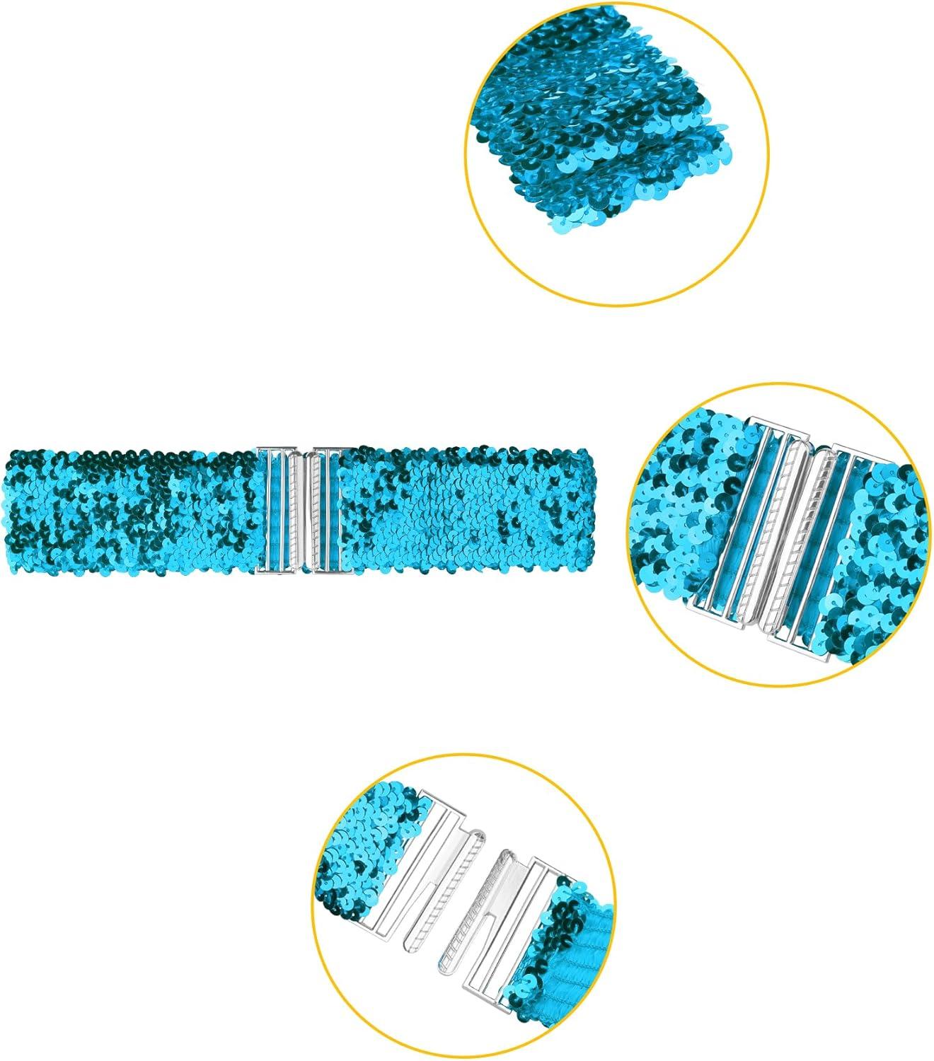 Allegra K Womens Plus Size Stretchy Waist Belts Metal Interlock Buckles Sequins Decor Belts for Dresses(Blue)
