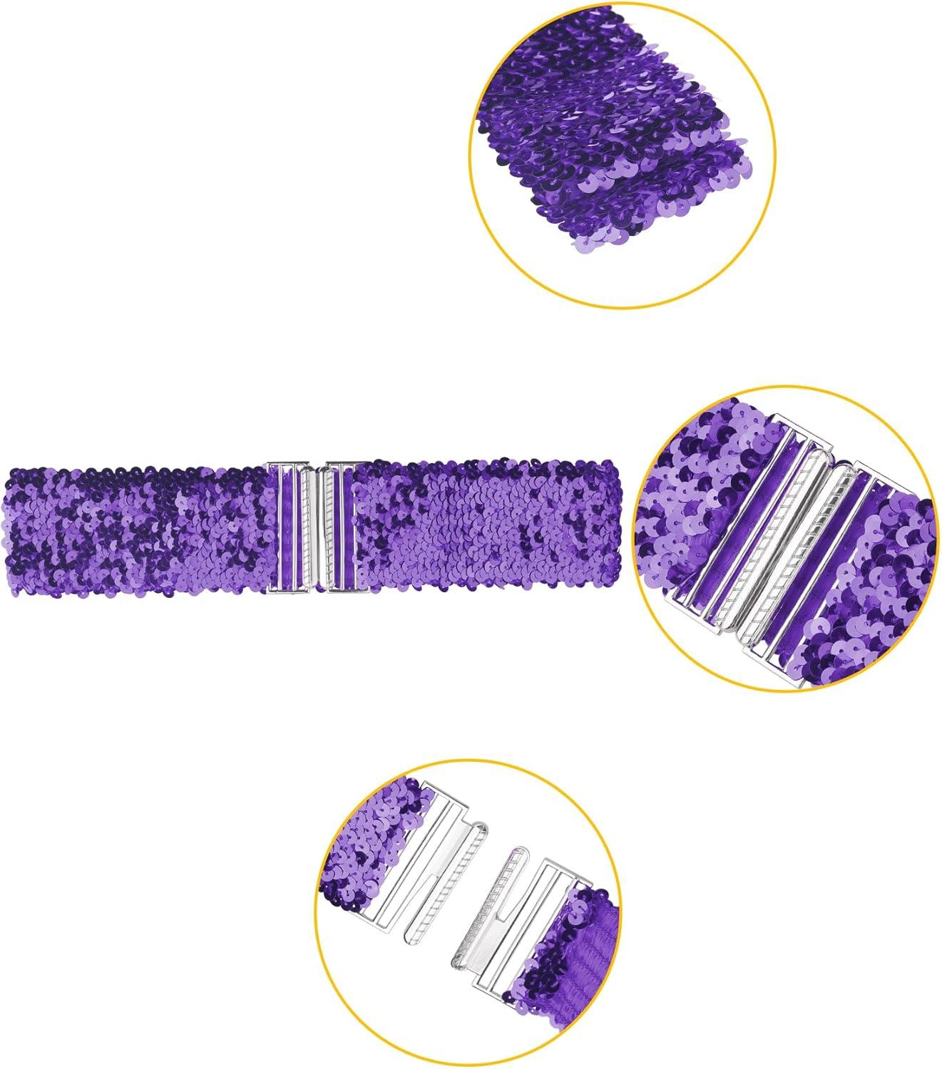 Allegra K Womens Plus Size Stretchy Waist Belts Metal Interlock Buckles Sequins Decor Belts for Dresses(Light Purple)
