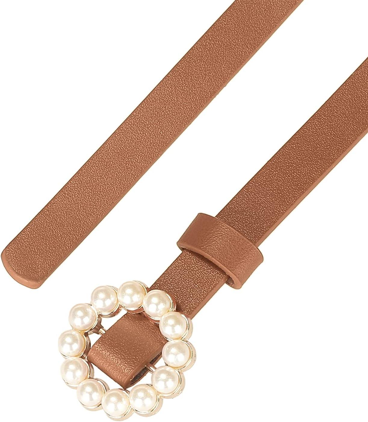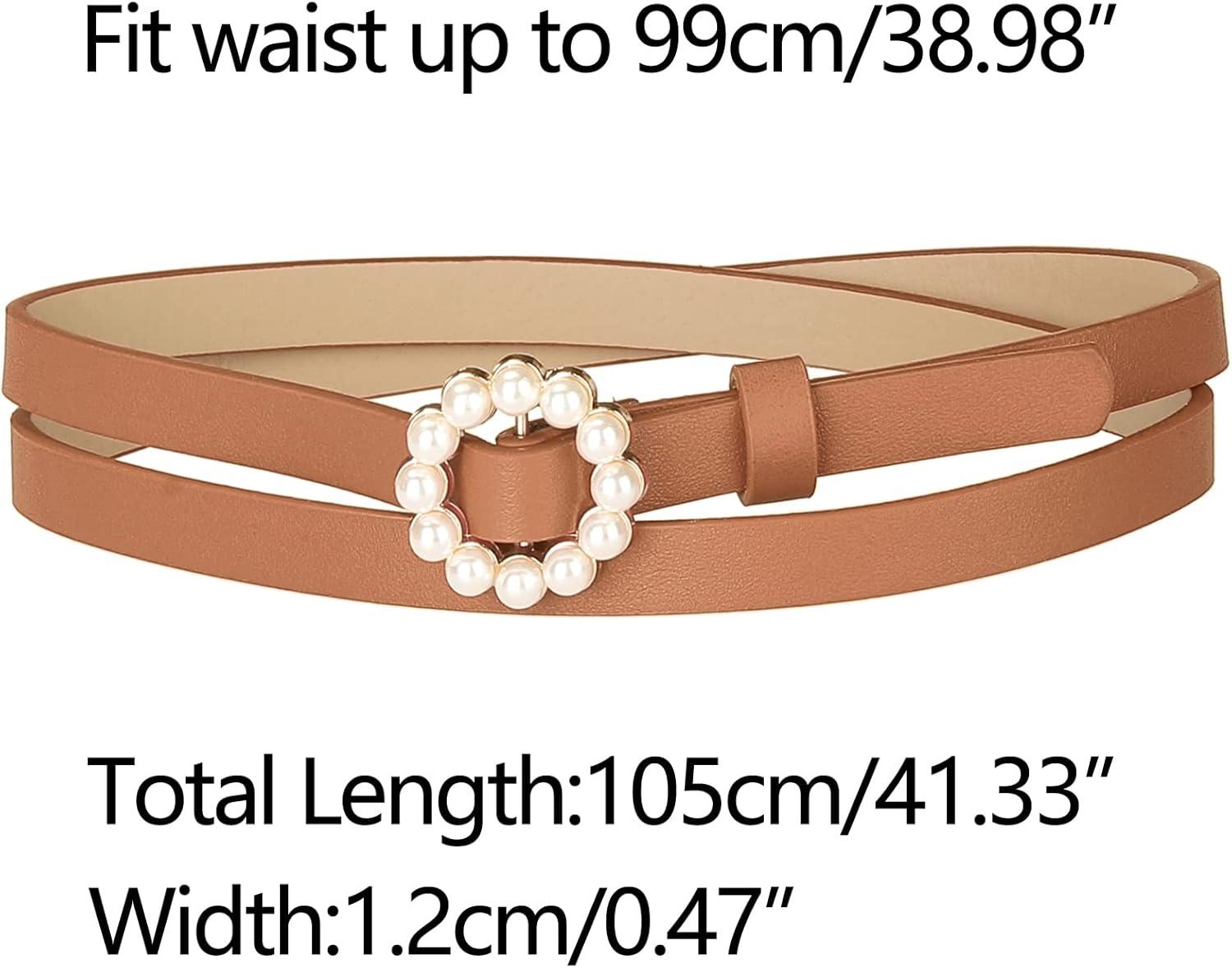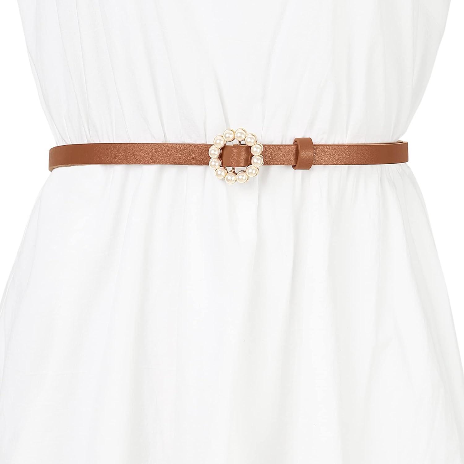 Allegra K Womens Plus Size Waist Belts Pearl Narrow Leather Adjustable Belt for Jeans Dresses Pants(Camel)