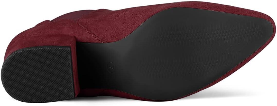 Allegra K Women's Pointed Toe Block Heel Ankle Chelsea Boots(Burgundy)