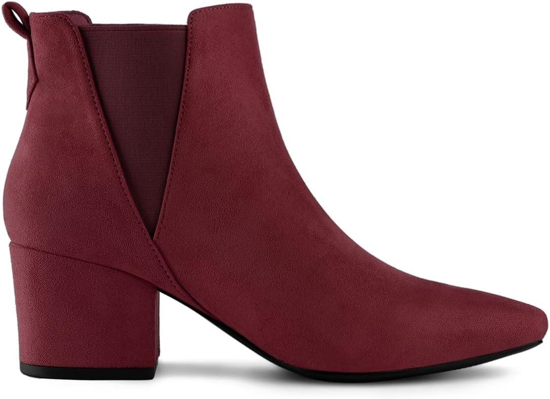 Allegra K Women’s Pointed Toe Block Heel Ankle Chelsea Boots(Burgundy)