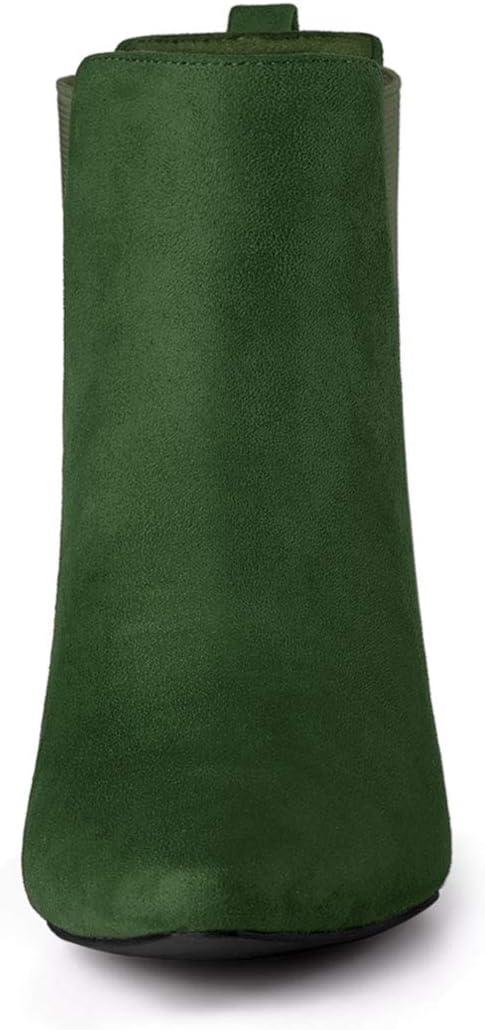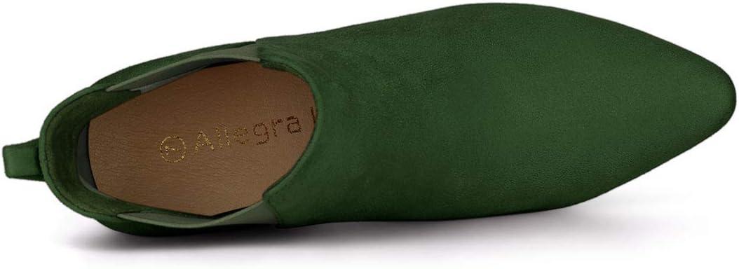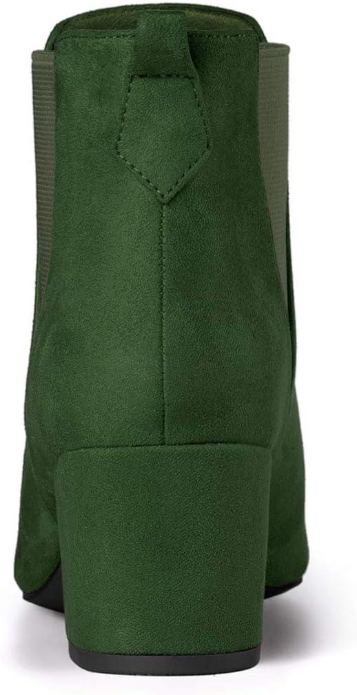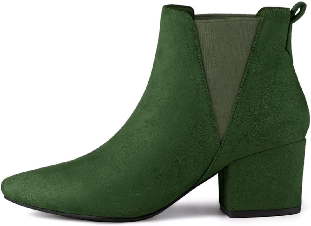 Allegra K Women's Pointed Toe Block Heel Ankle Chelsea Boots(Green)