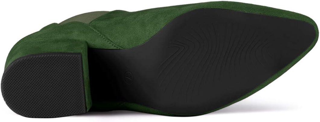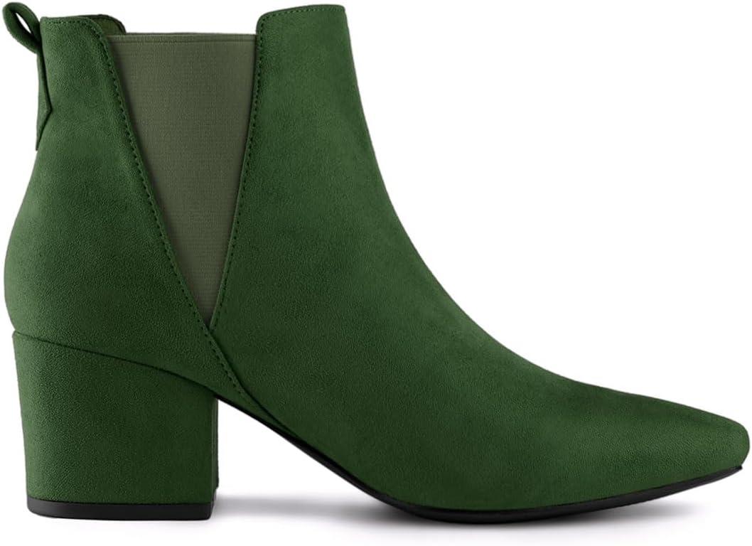 Allegra K Women’s Pointed Toe Block Heel Ankle Chelsea Boots(Green)
