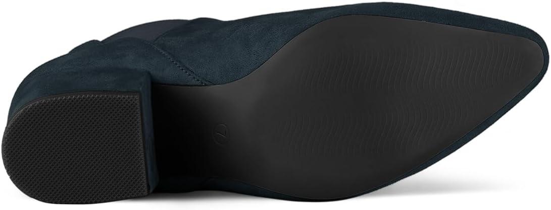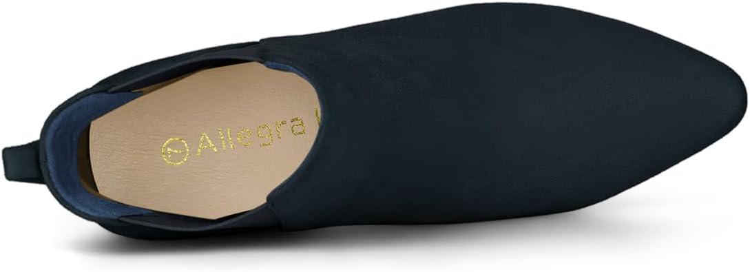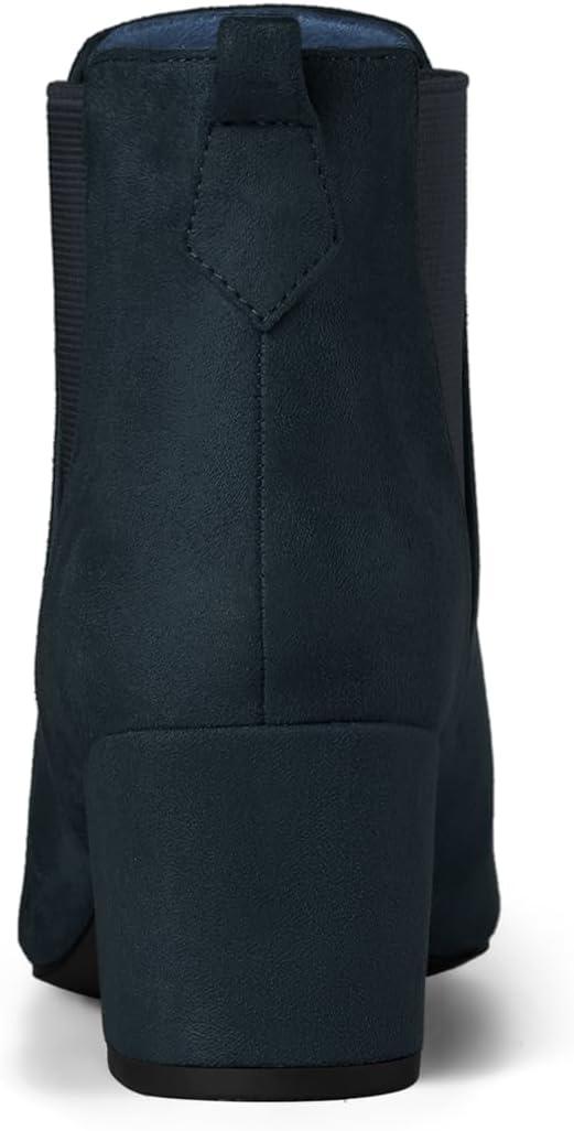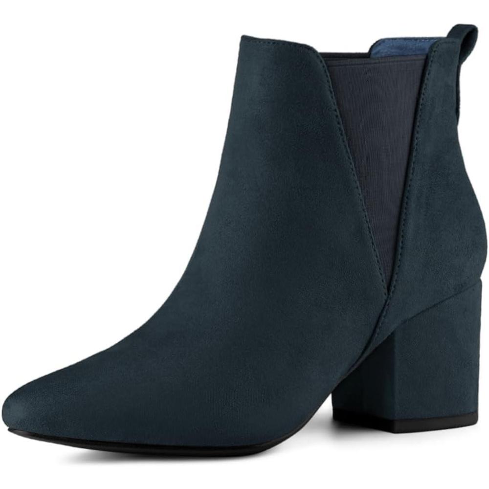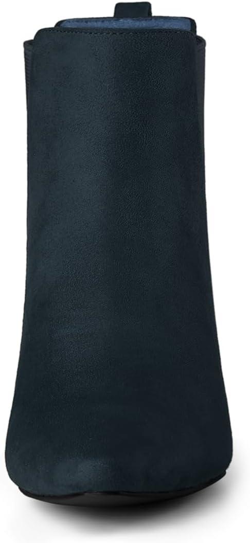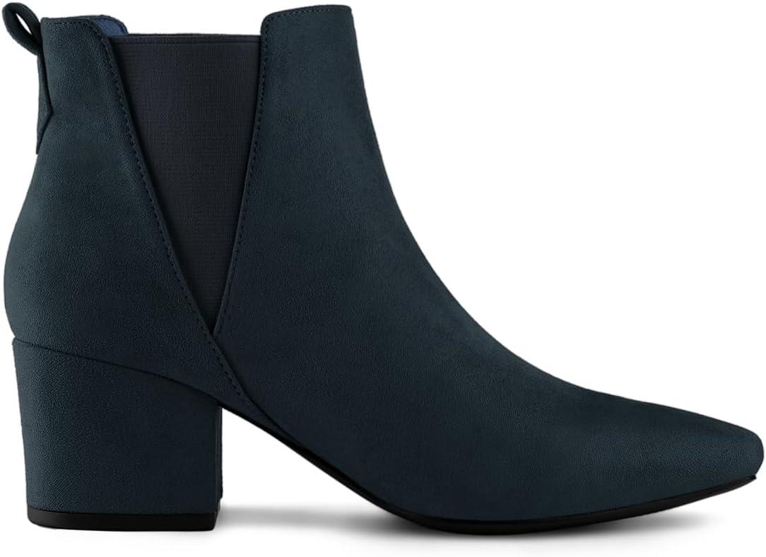 Allegra K Women’s Pointed Toe Block Heel Ankle Chelsea Boots(Navy Blue)