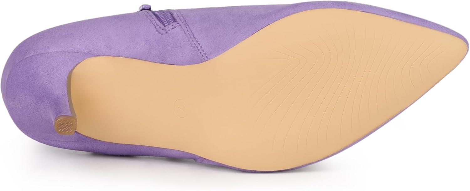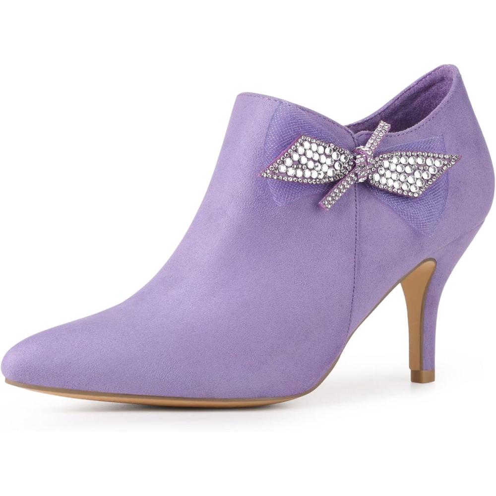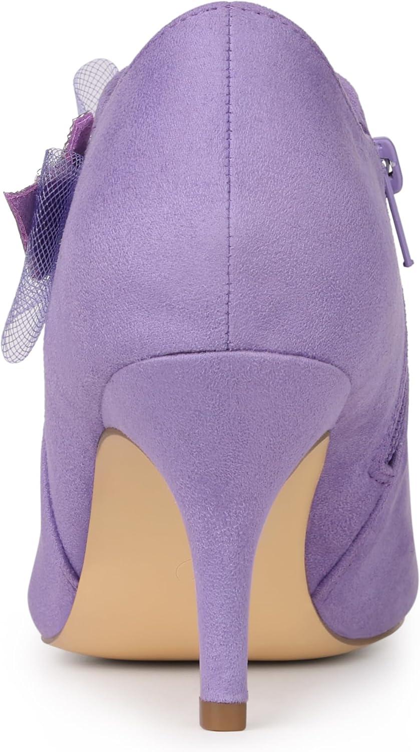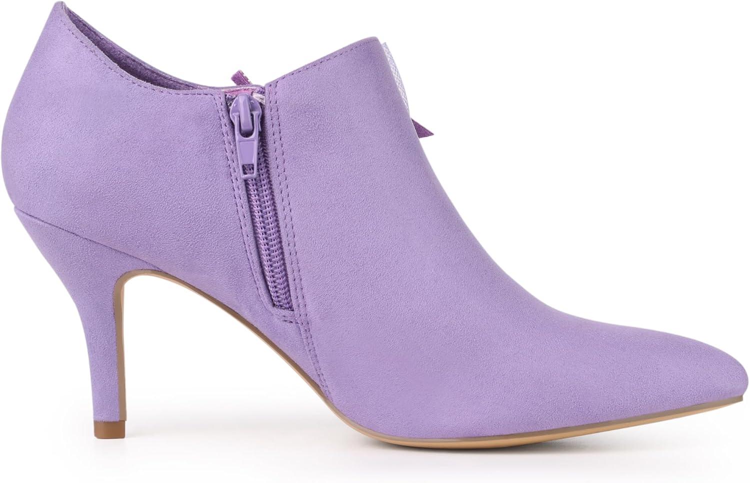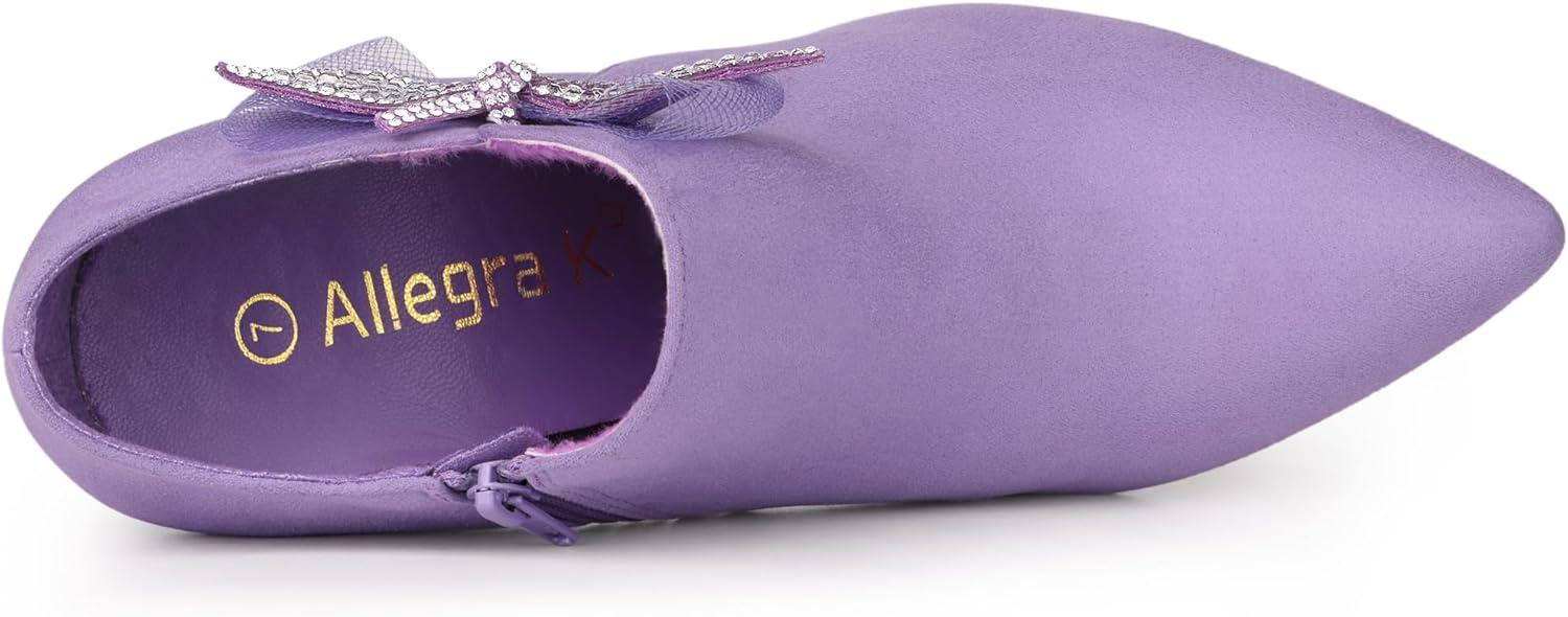 Allegra K Women's Pointed Toe Bow Decor Stiletto Heel Ankle Boots(Purple)