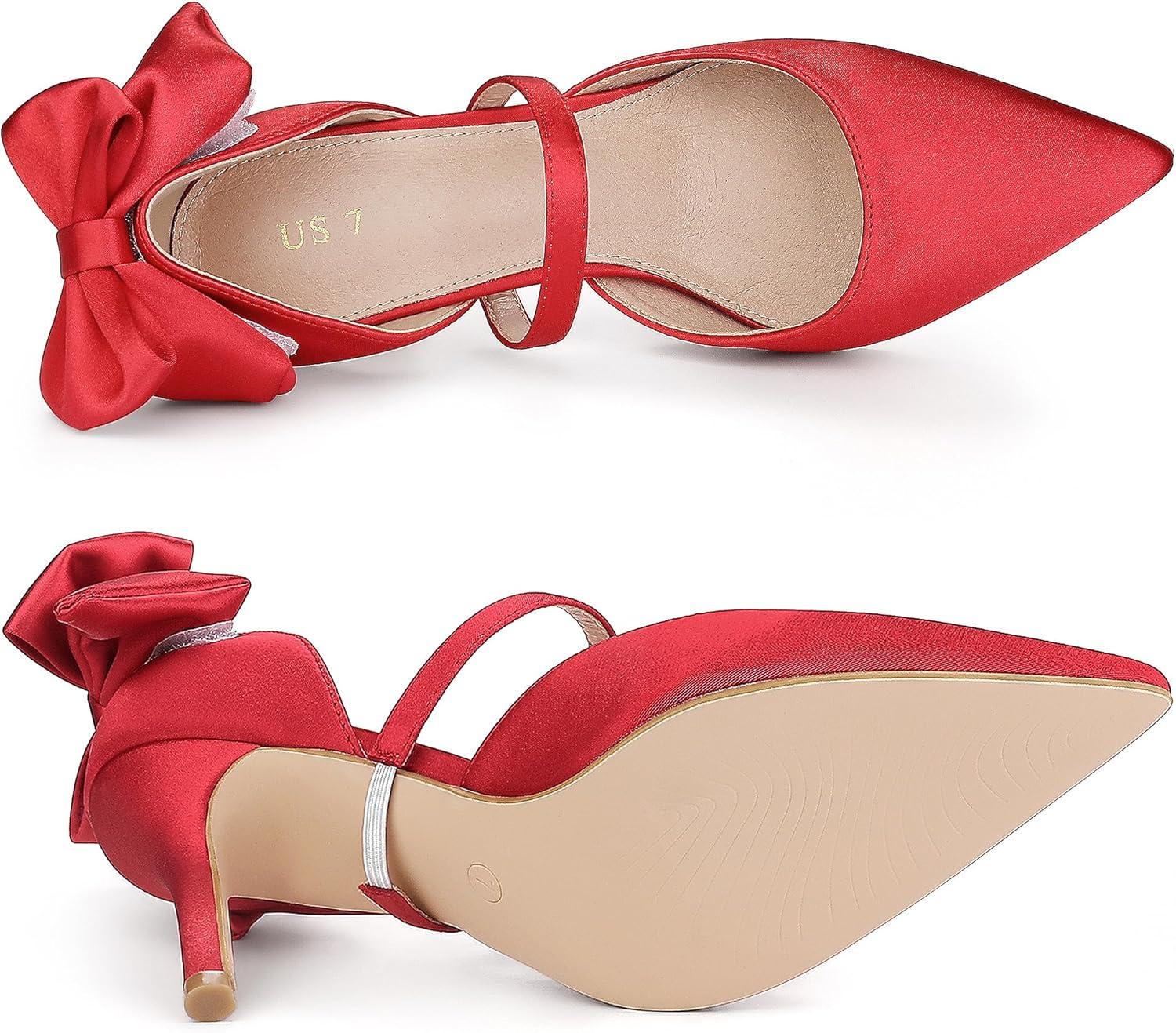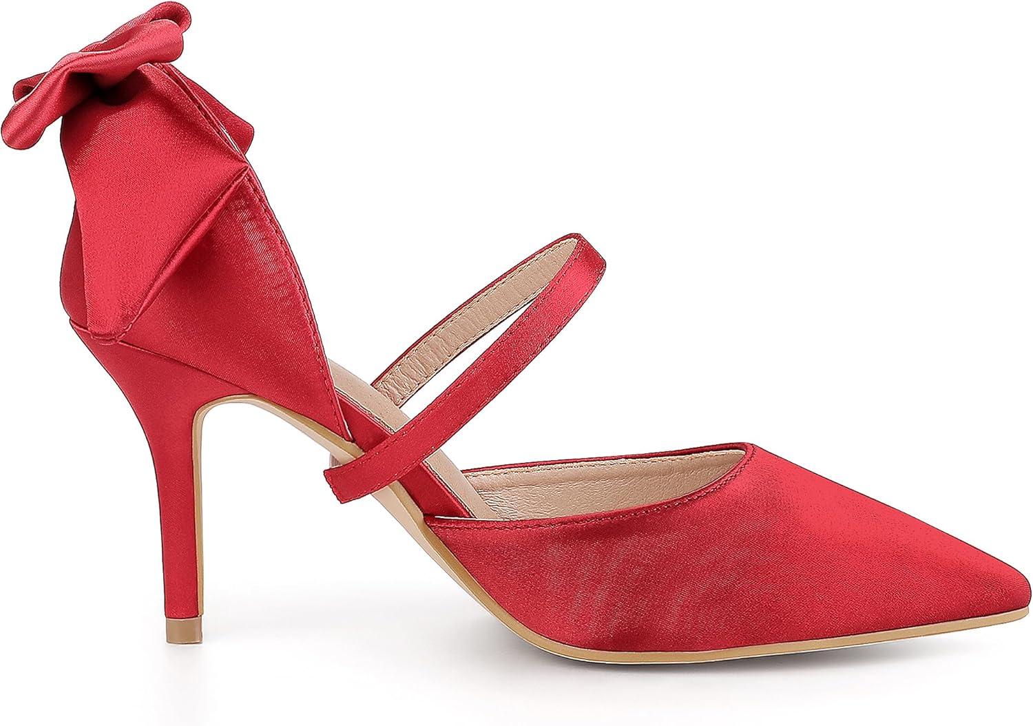 Allegra K Women’s Pointed Toe Bow Satin Stiletto Heels Pumps(Red)