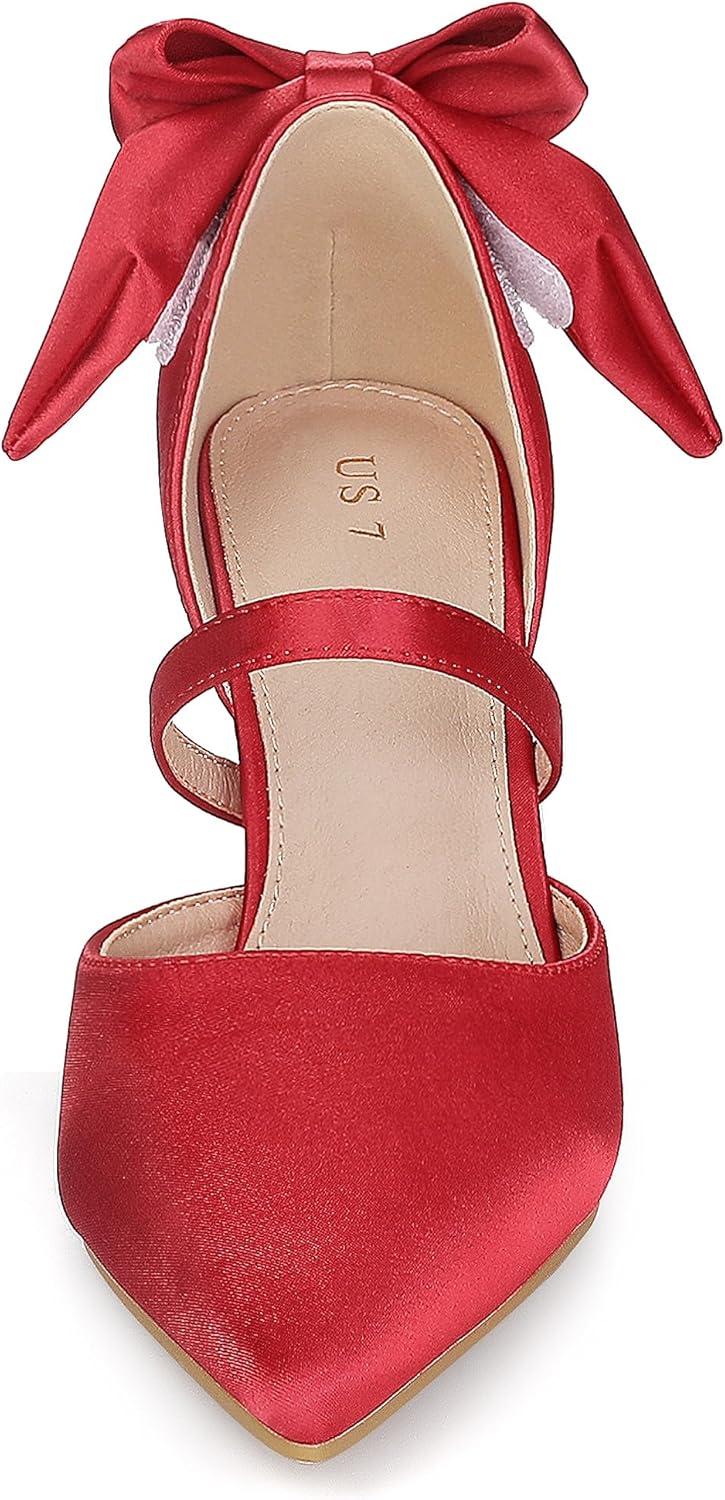 Allegra K Women's Pointed Toe Bow Satin Stiletto Heels Pumps(Red)