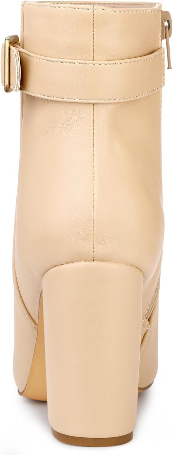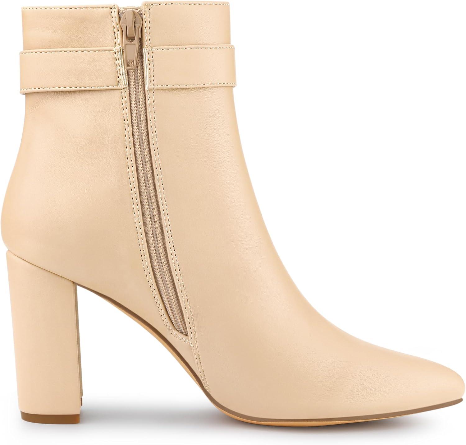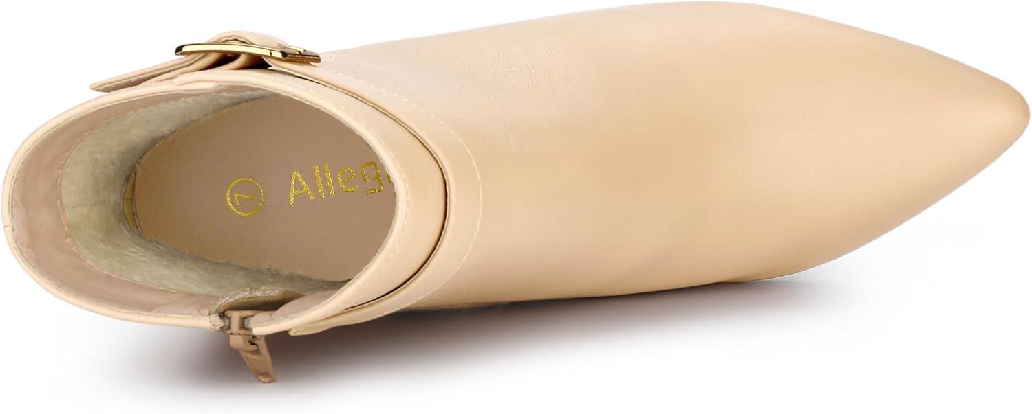 Allegra K Women’s Pointed Toe Buckle Decor Heel Ankle Booties(Beige)