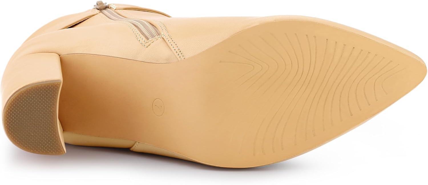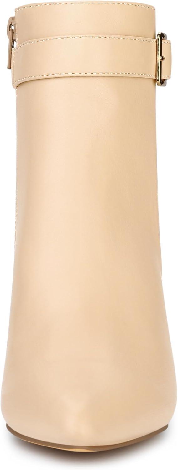Allegra K Women's Pointed Toe Buckle Decor Heel Ankle Booties(Beige)