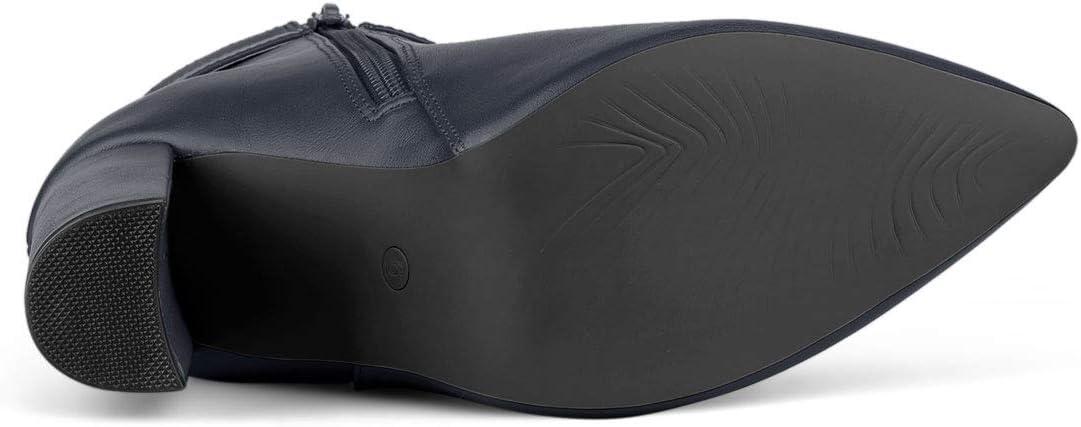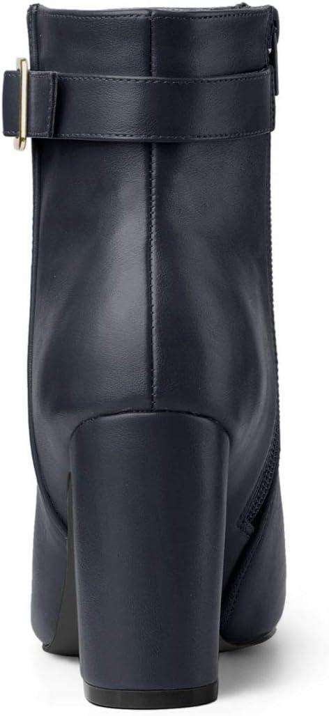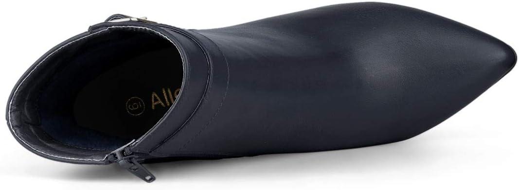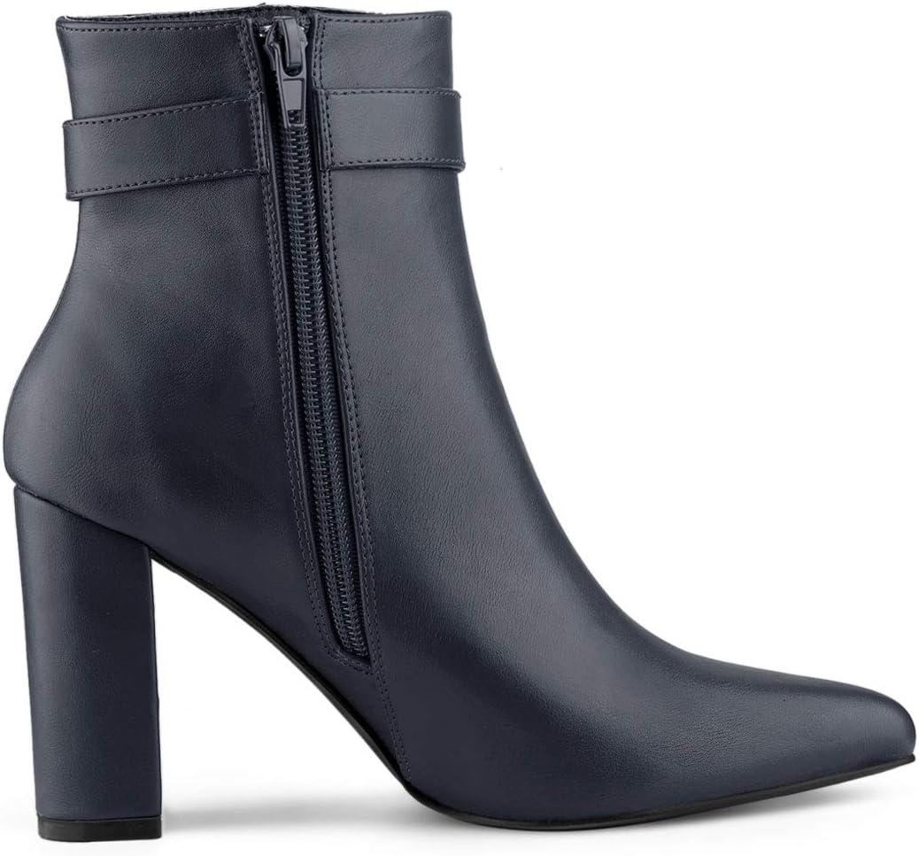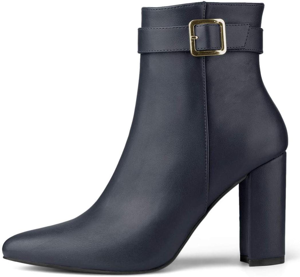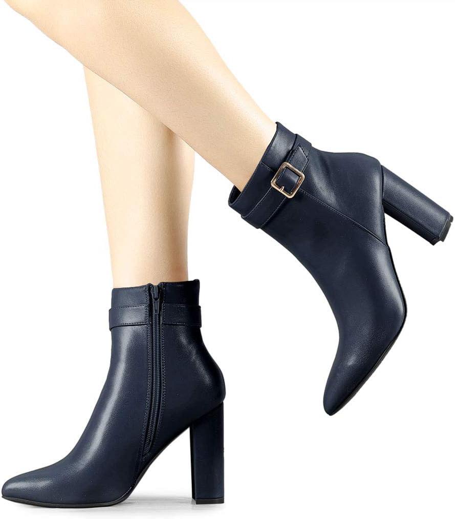 Allegra K Women’s Pointed Toe Buckle Decor Heel Ankle Booties(Navy Blue)