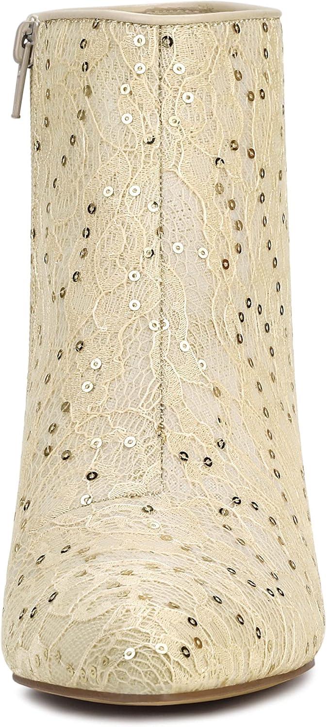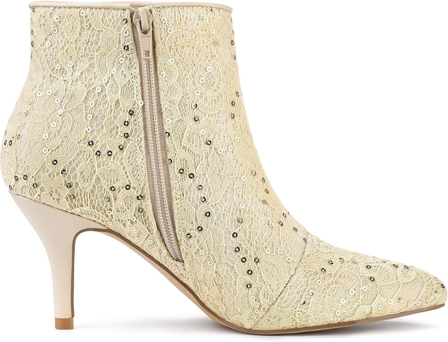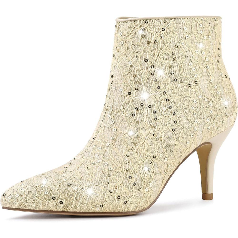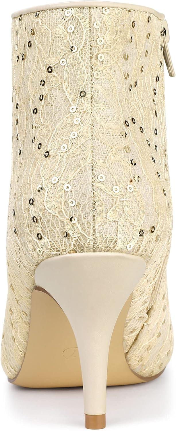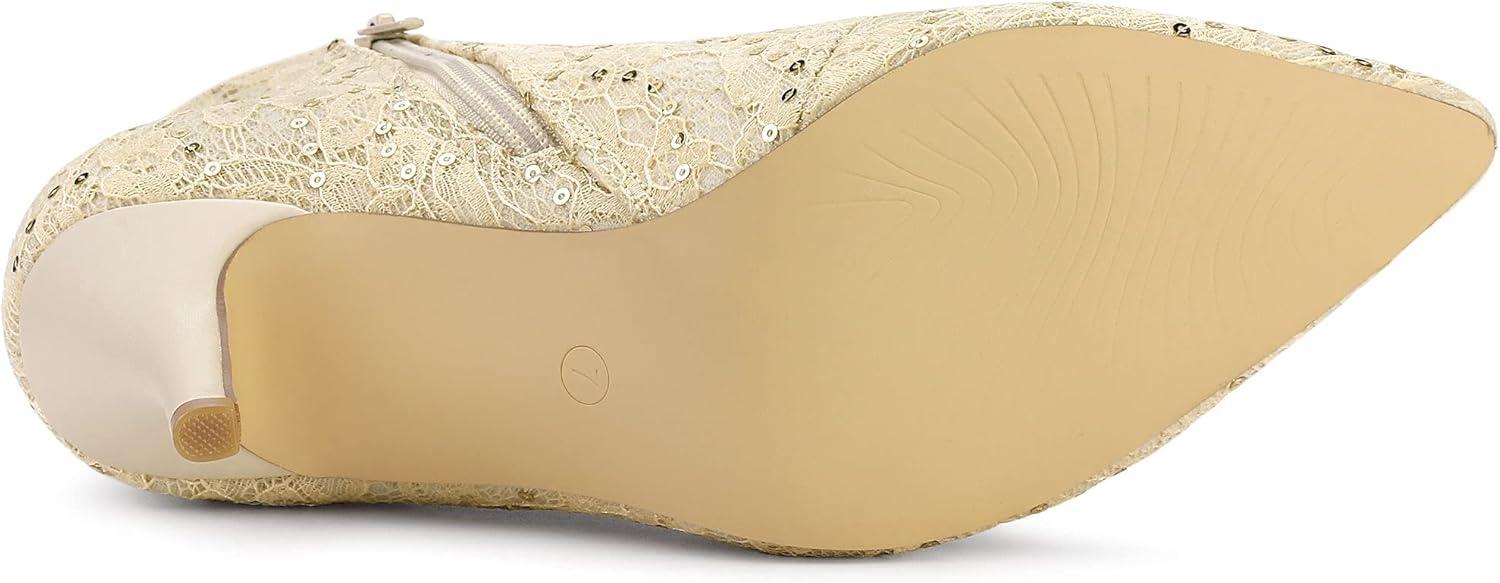 Allegra K Women's Pointed Toe Buckle Stiletto Heels Ankle Boots(Beige)