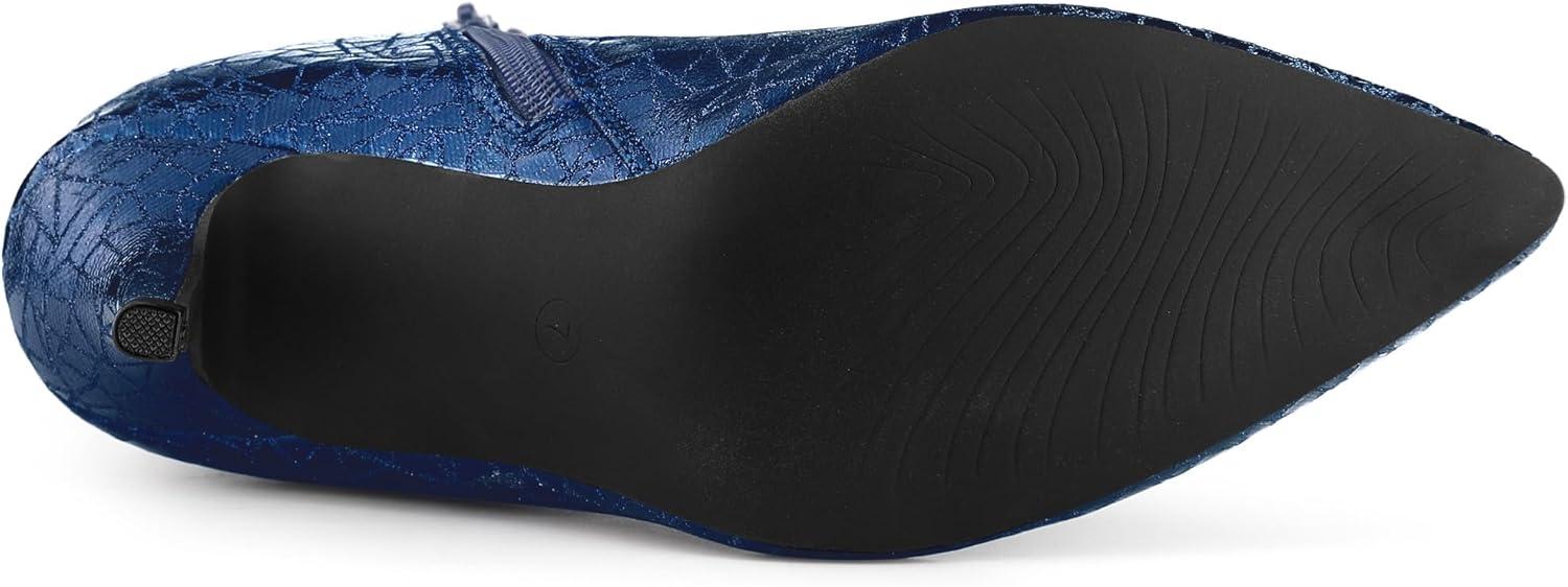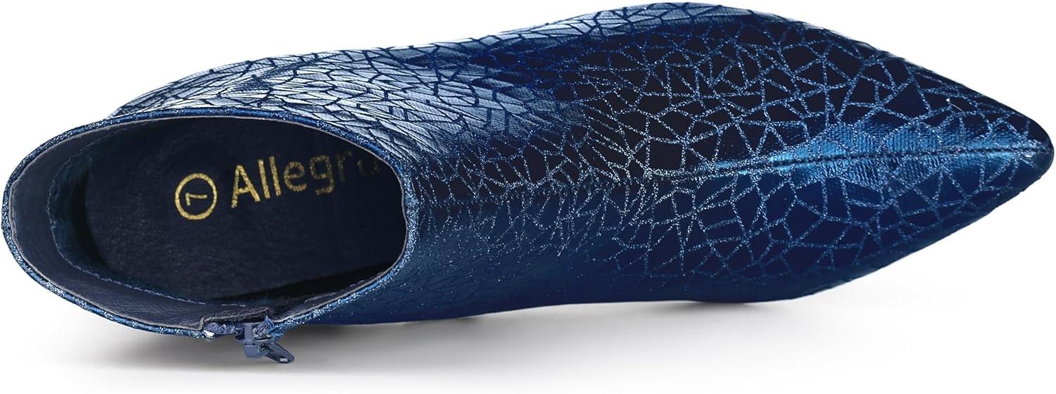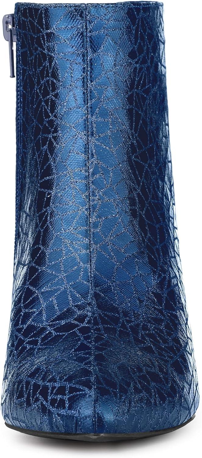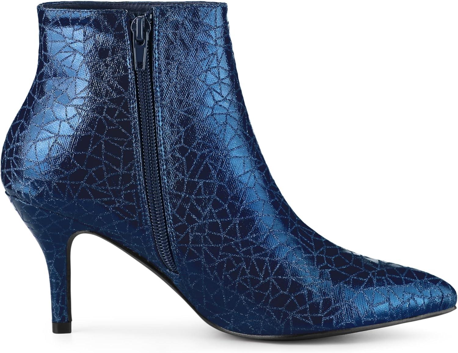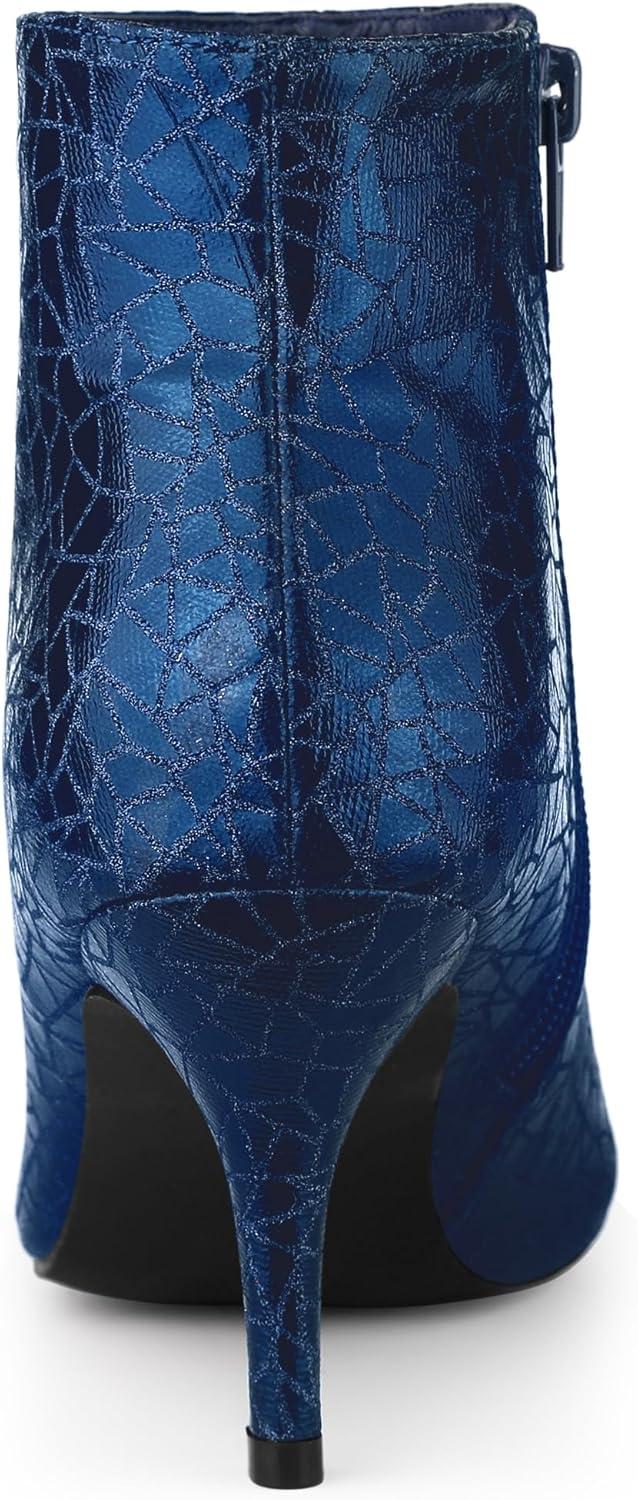 Allegra K Women's Pointed Toe Buckle Stiletto Heels Ankle Boots(Blue)